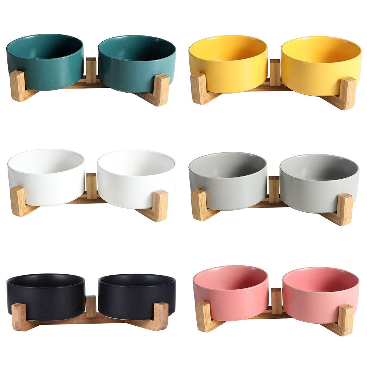 Ceramic Pet Bowl Double Cat Food Bowl Dog Water Bowl Feeding Drinking Bowl Set