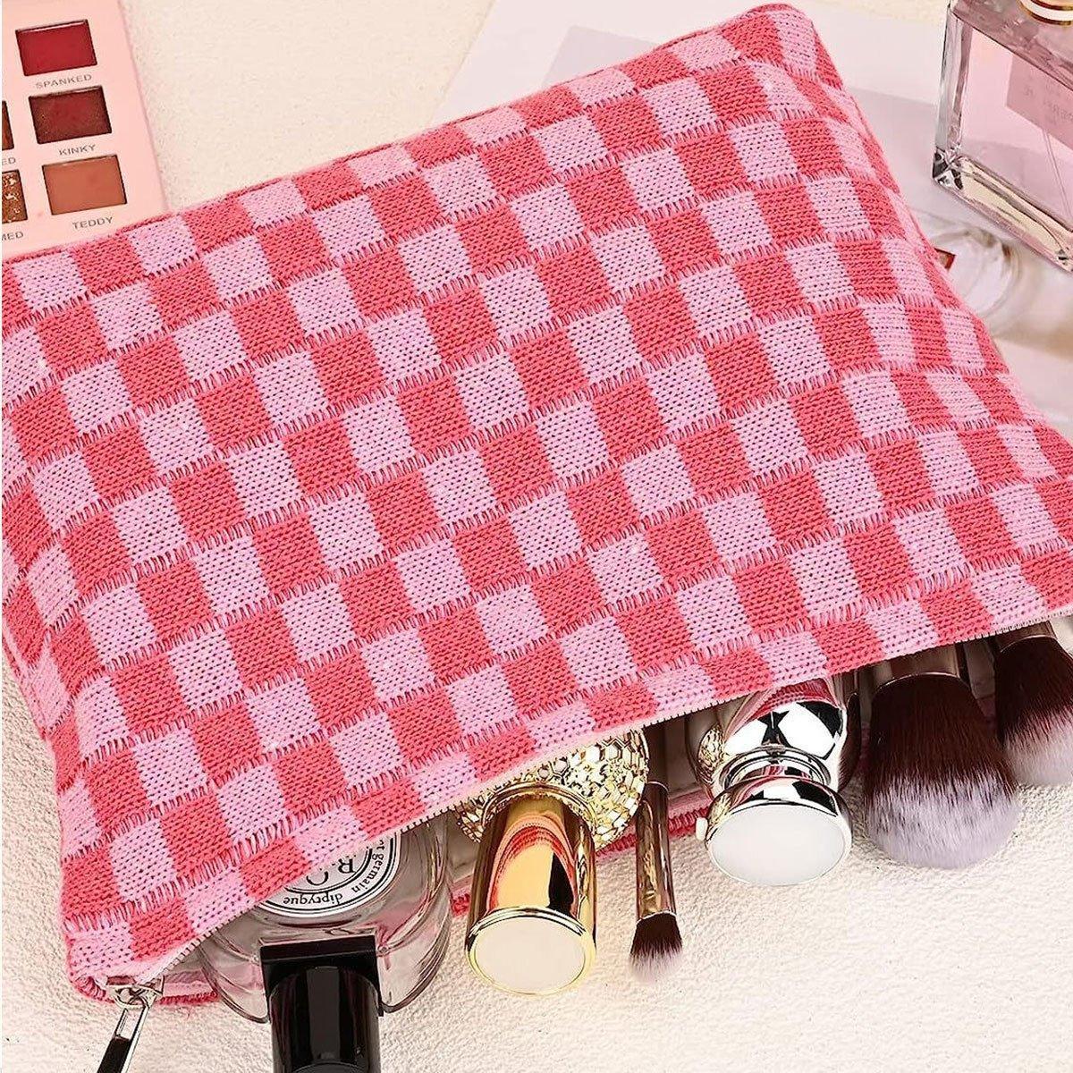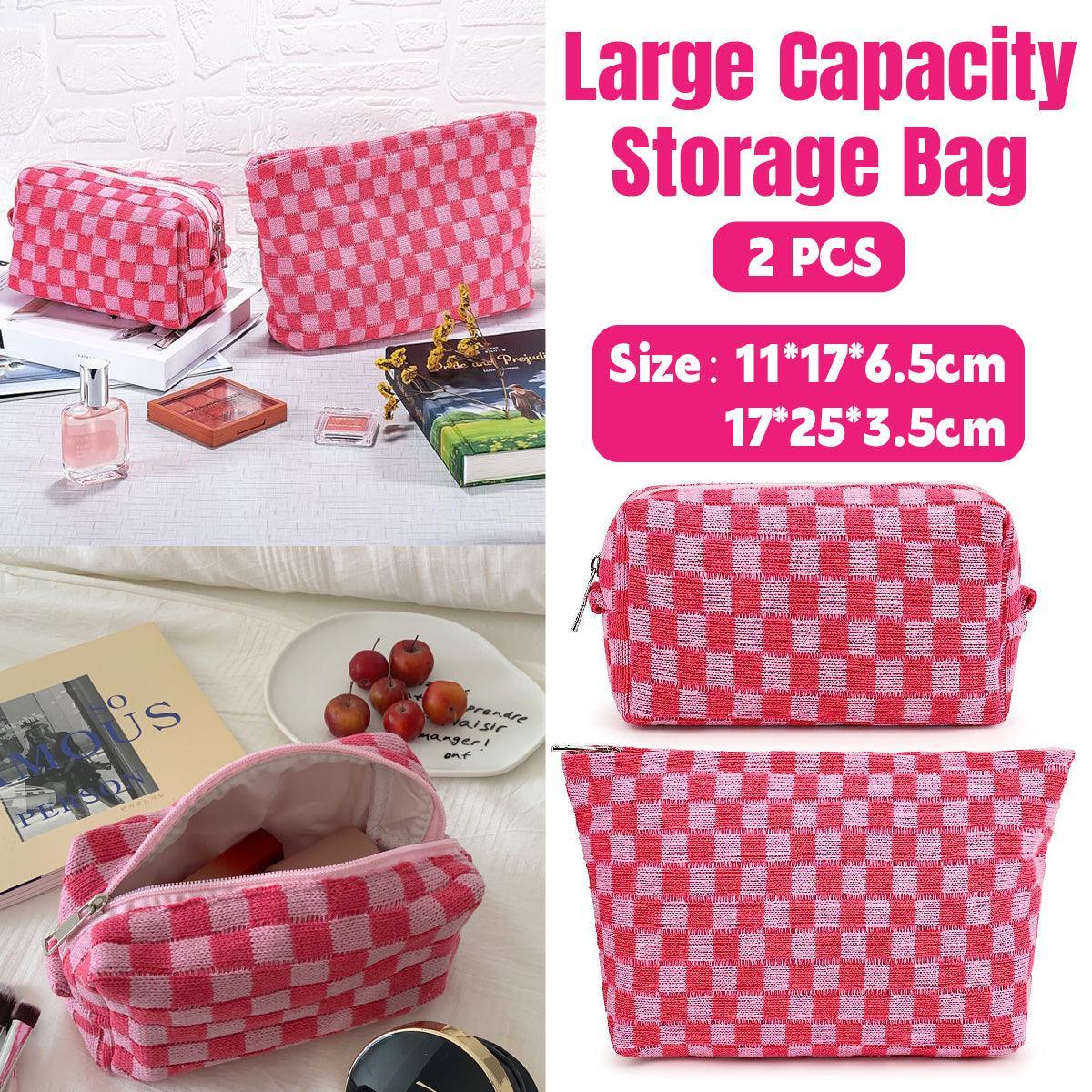 Checkerboard Makeup Bag Large Capacity Knitted Storage Bag Portable Toiletry