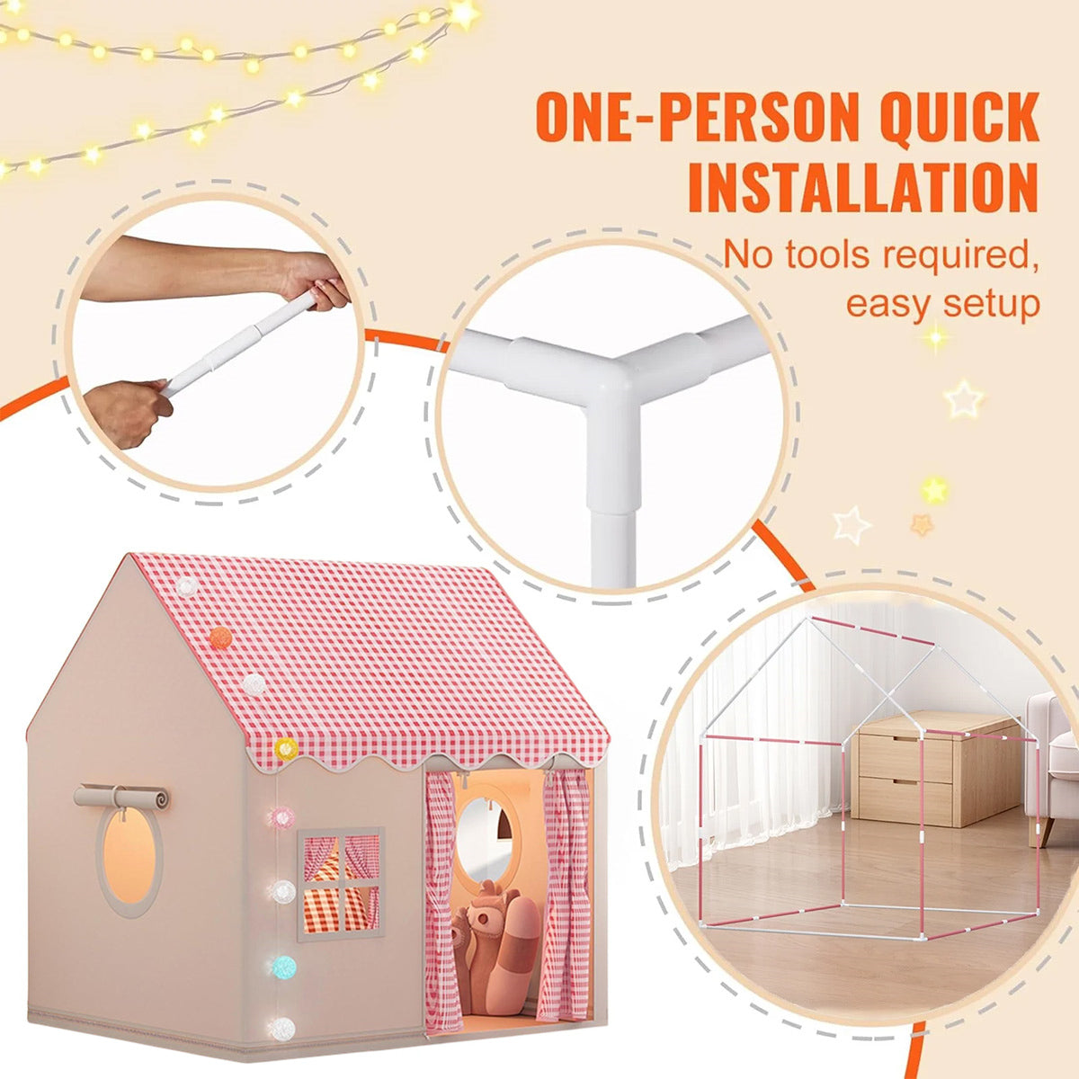 Children Indoor Play Tent Castle Tent Safe Washable Fabric Easy To Assemble