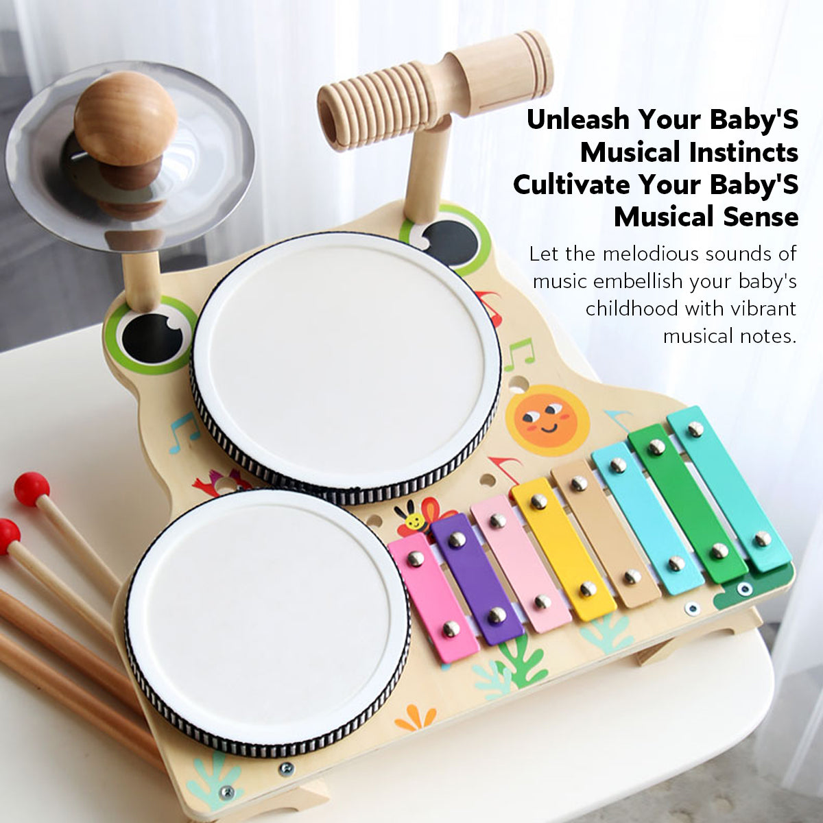 Children Wooden Multifunctional Drum Set Educational Musical Toy Durable Use