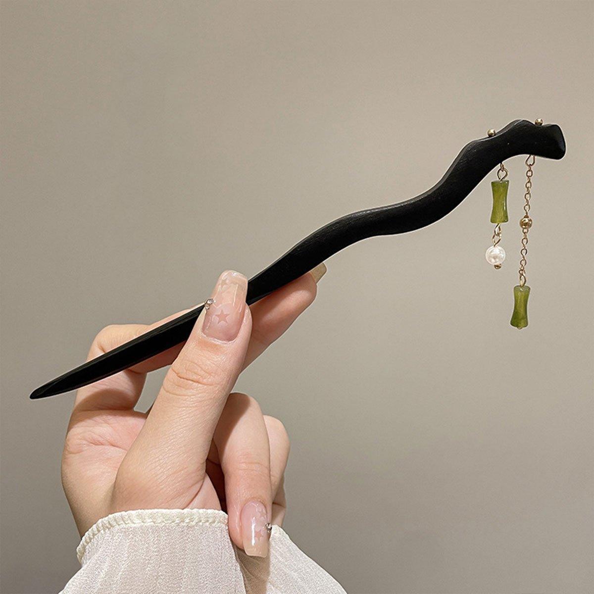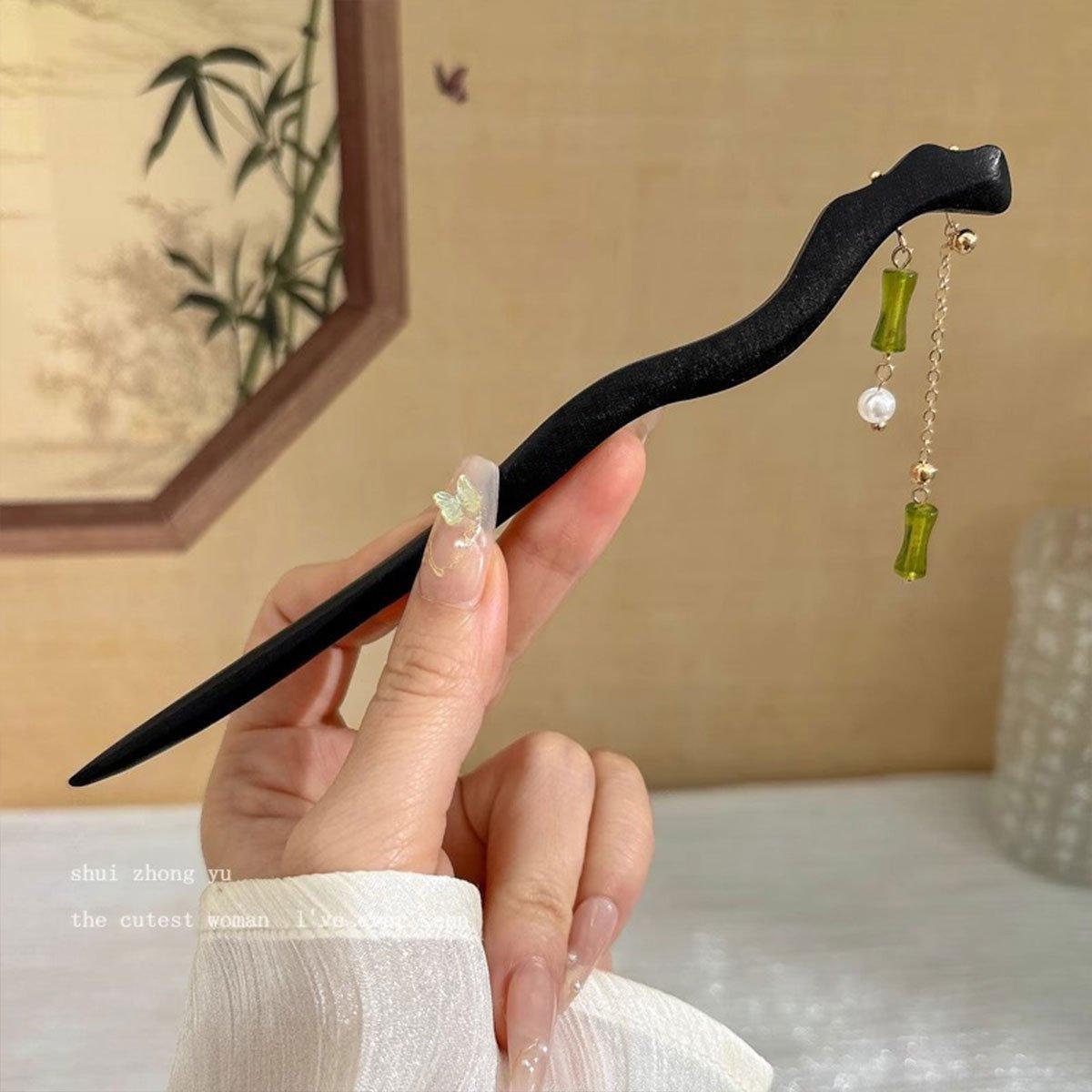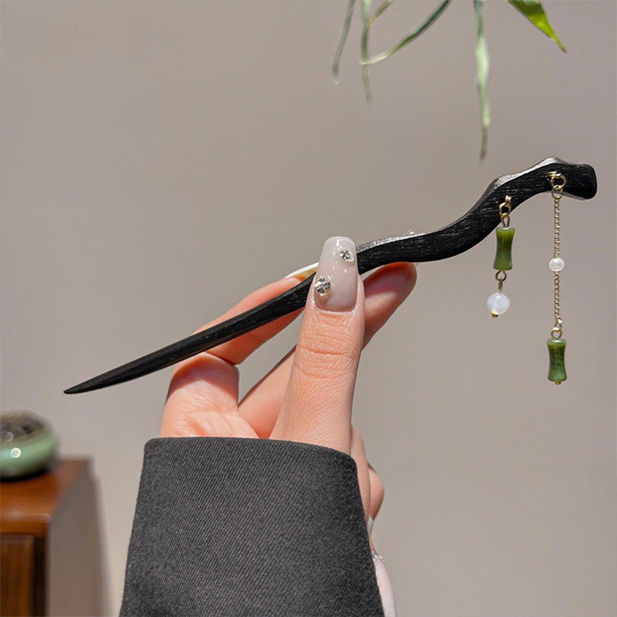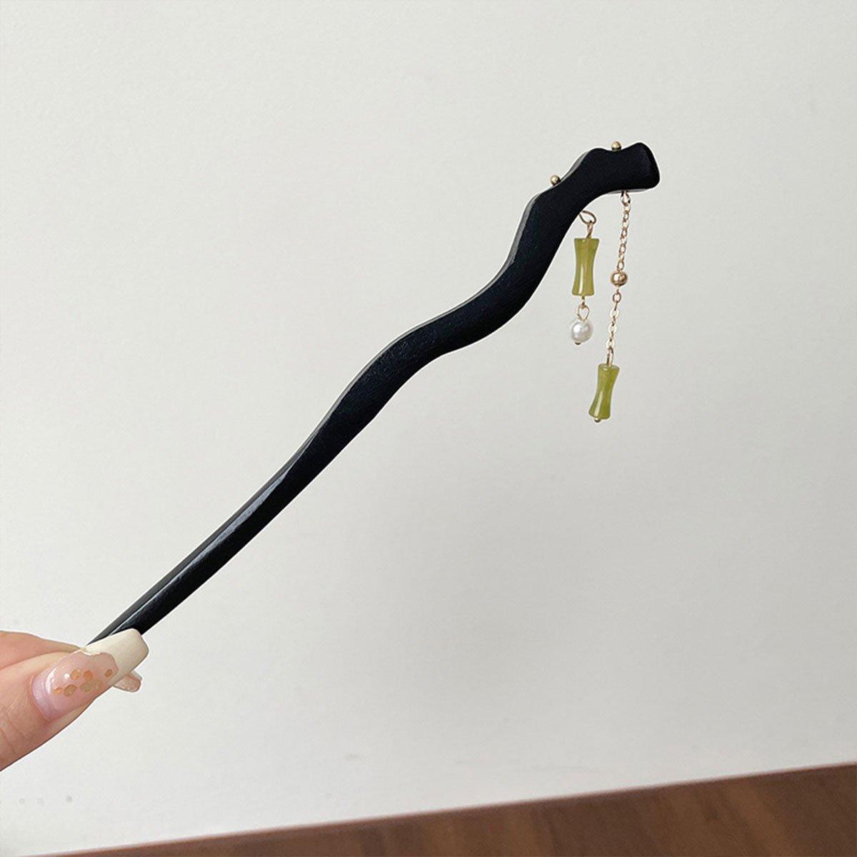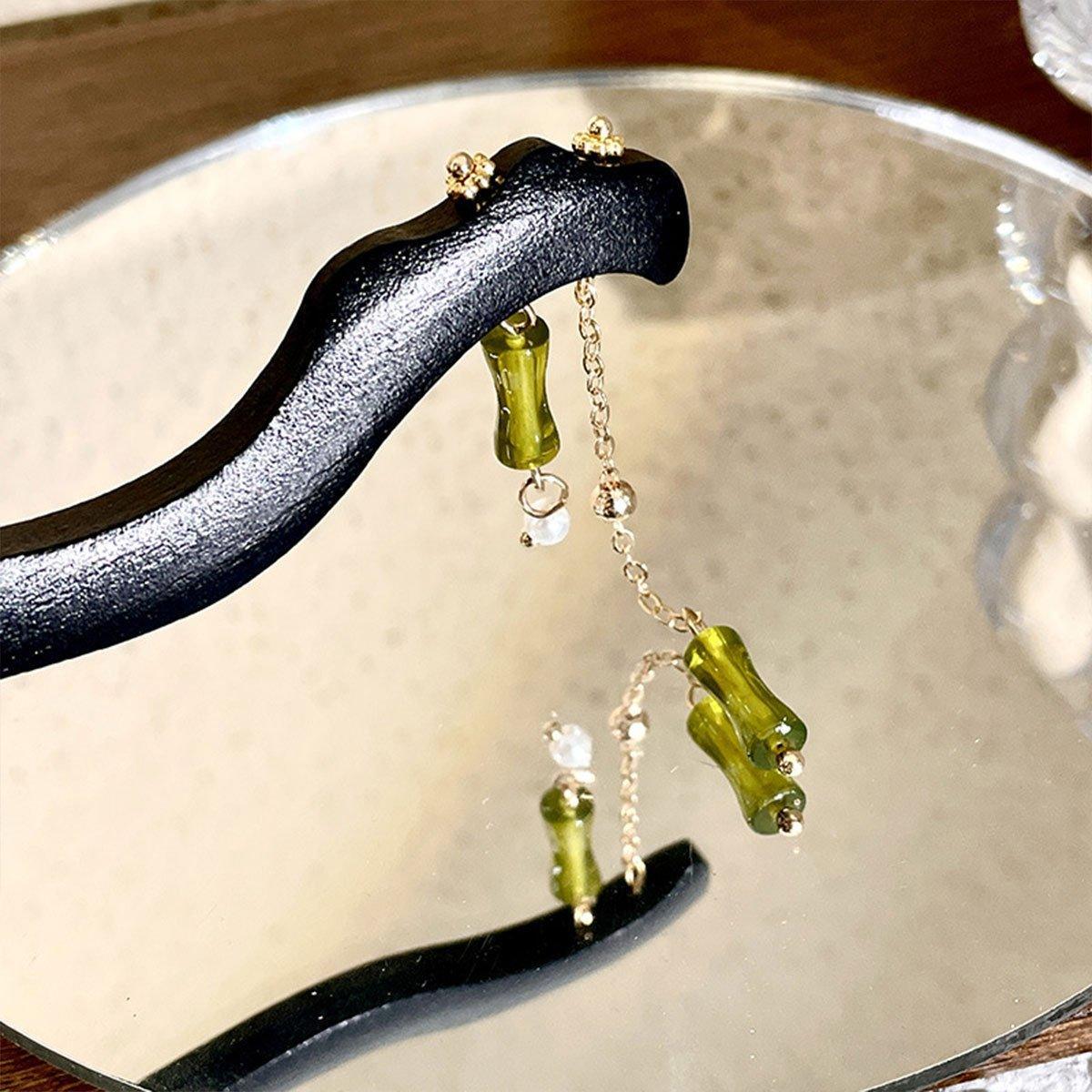 Chinese Style Double Green Bamboo Fringe Hairpin Hanfu Headdress Women