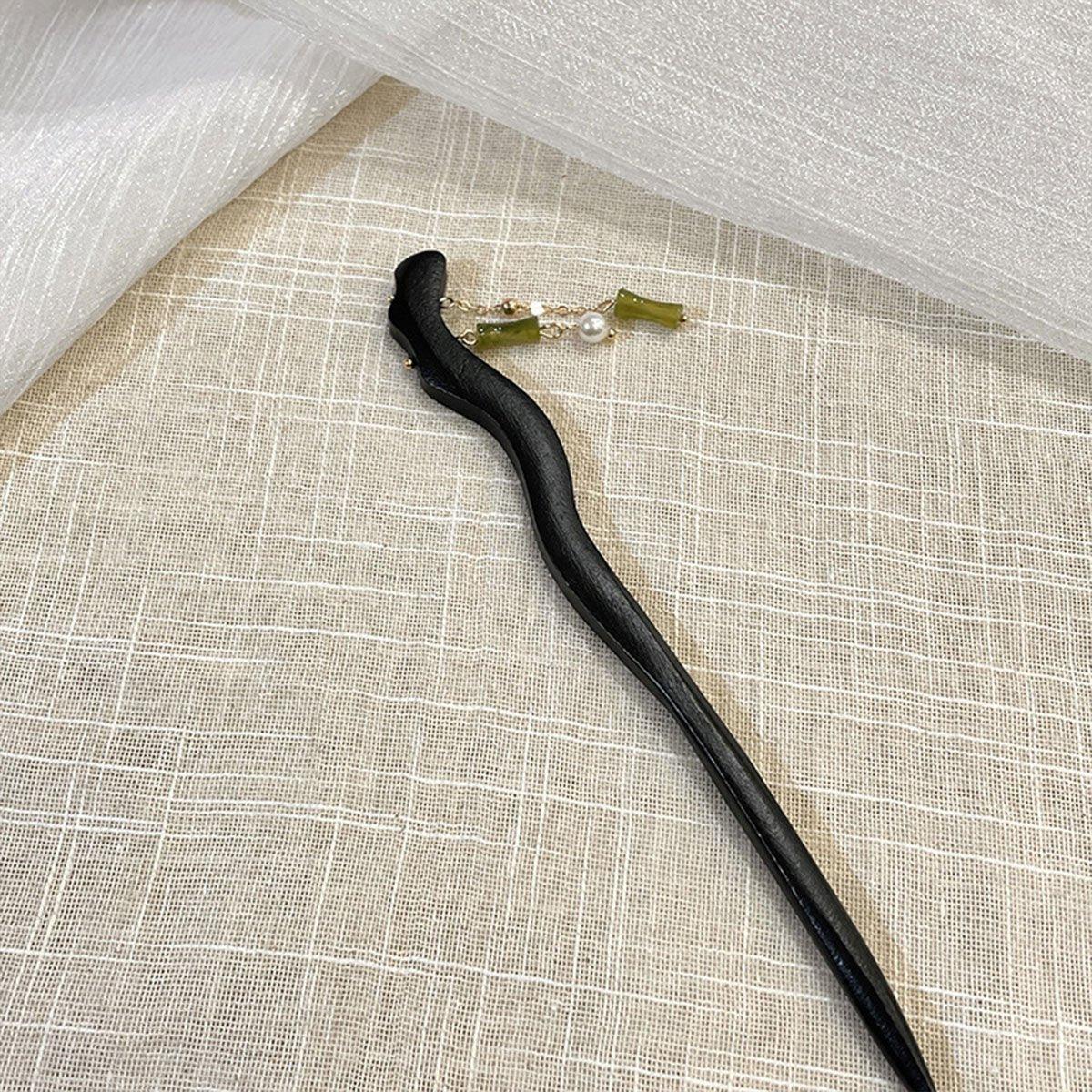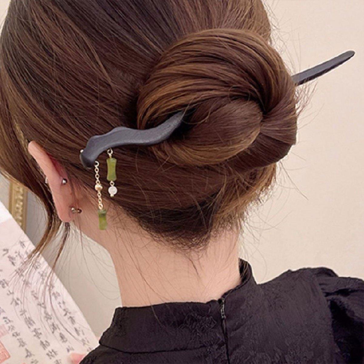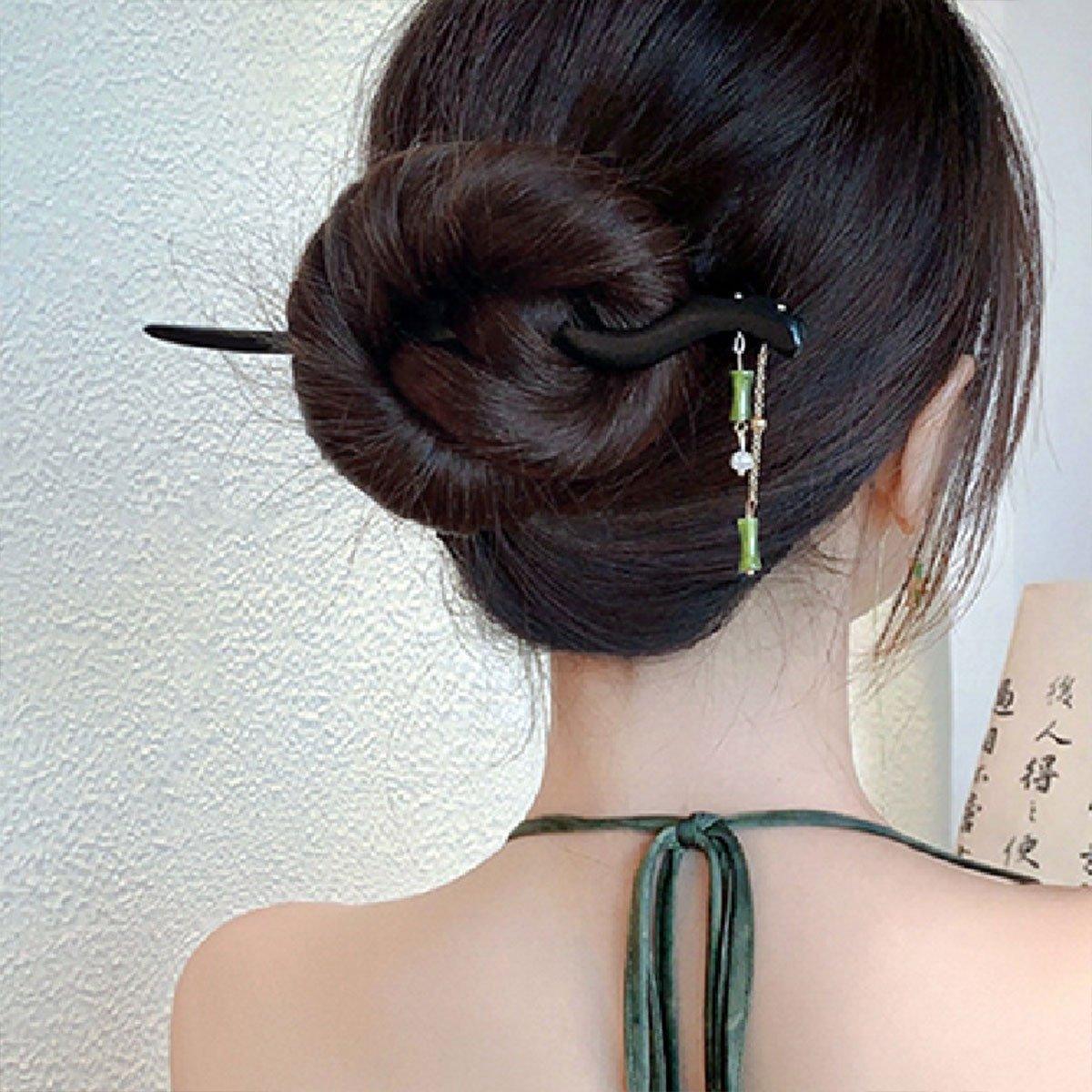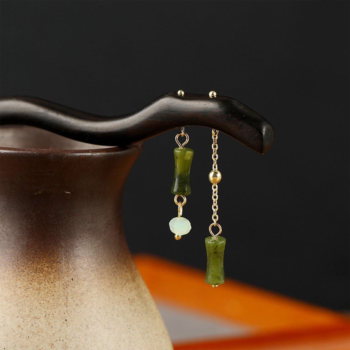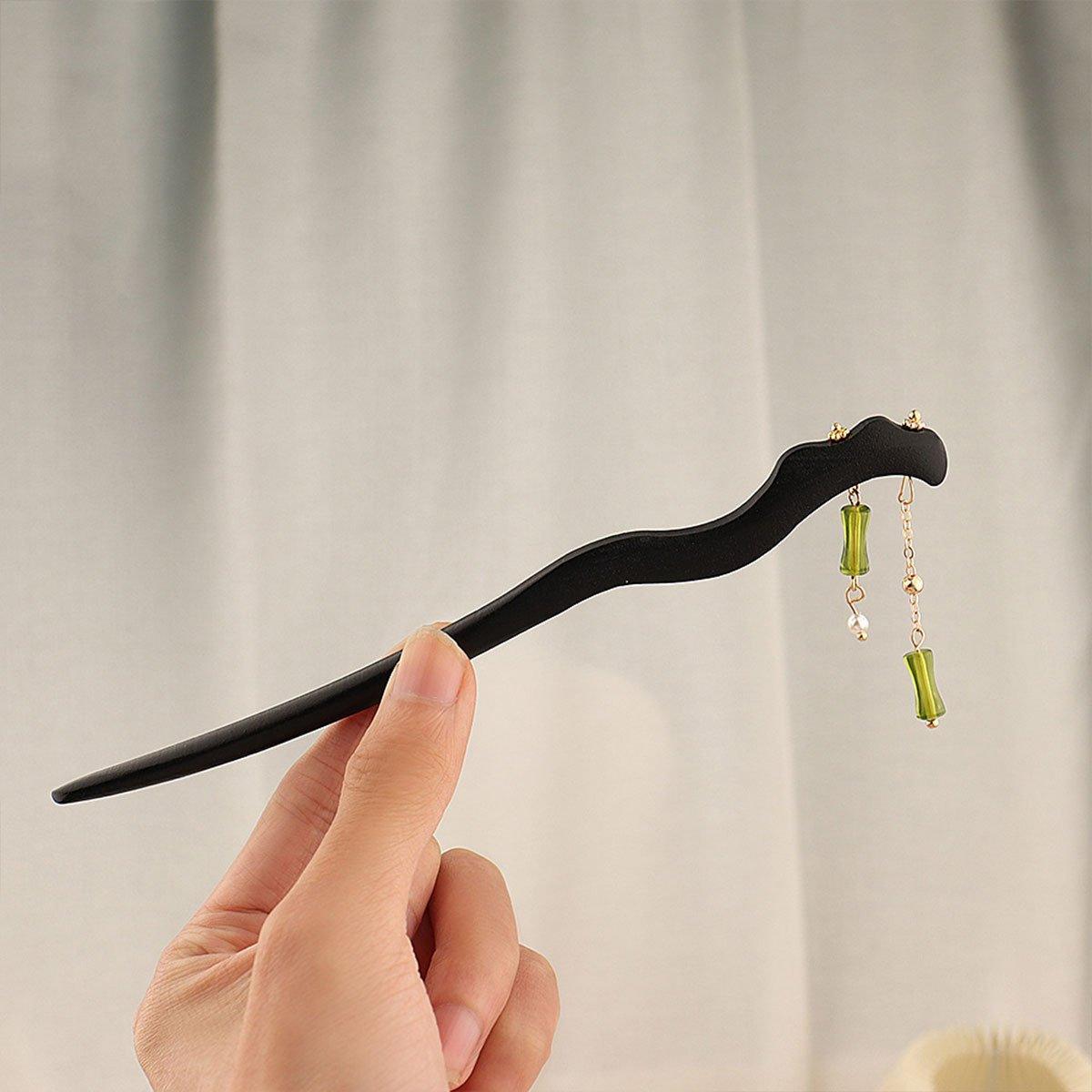 Chinese Style Double Green Bamboo Fringe Hairpin Hanfu Headdress Women