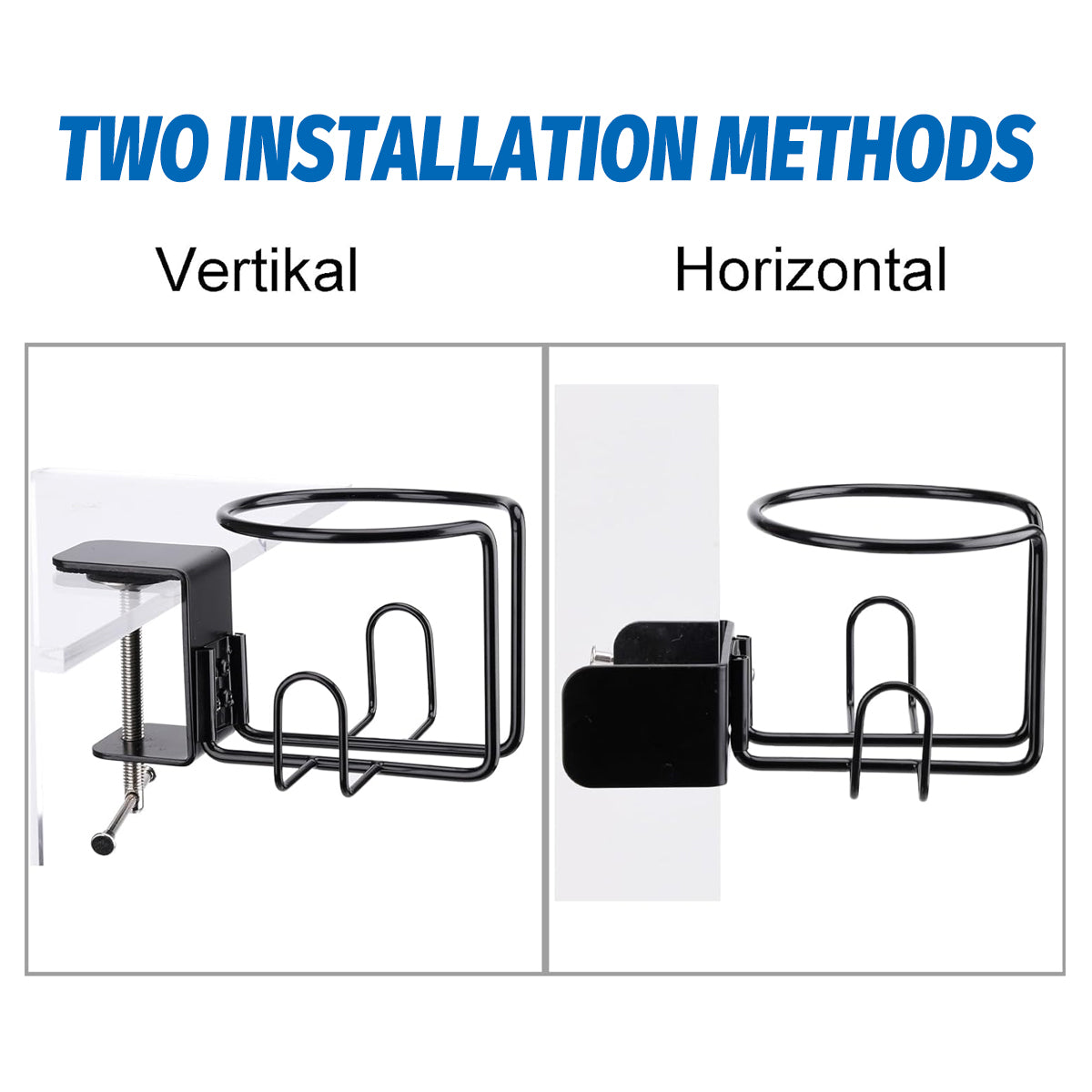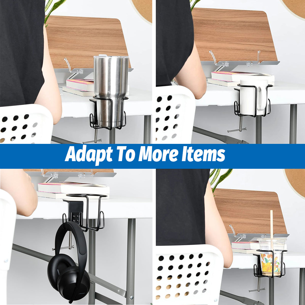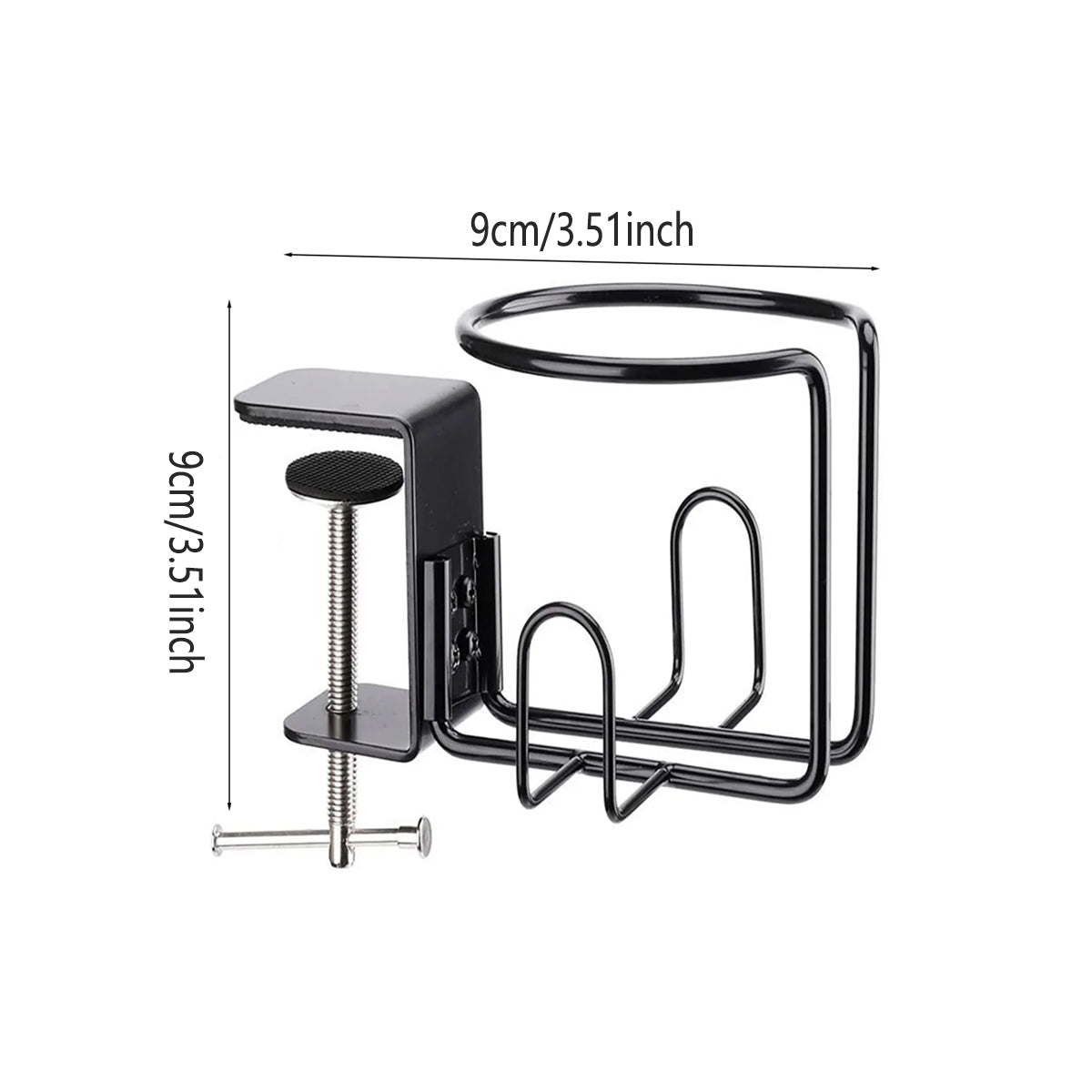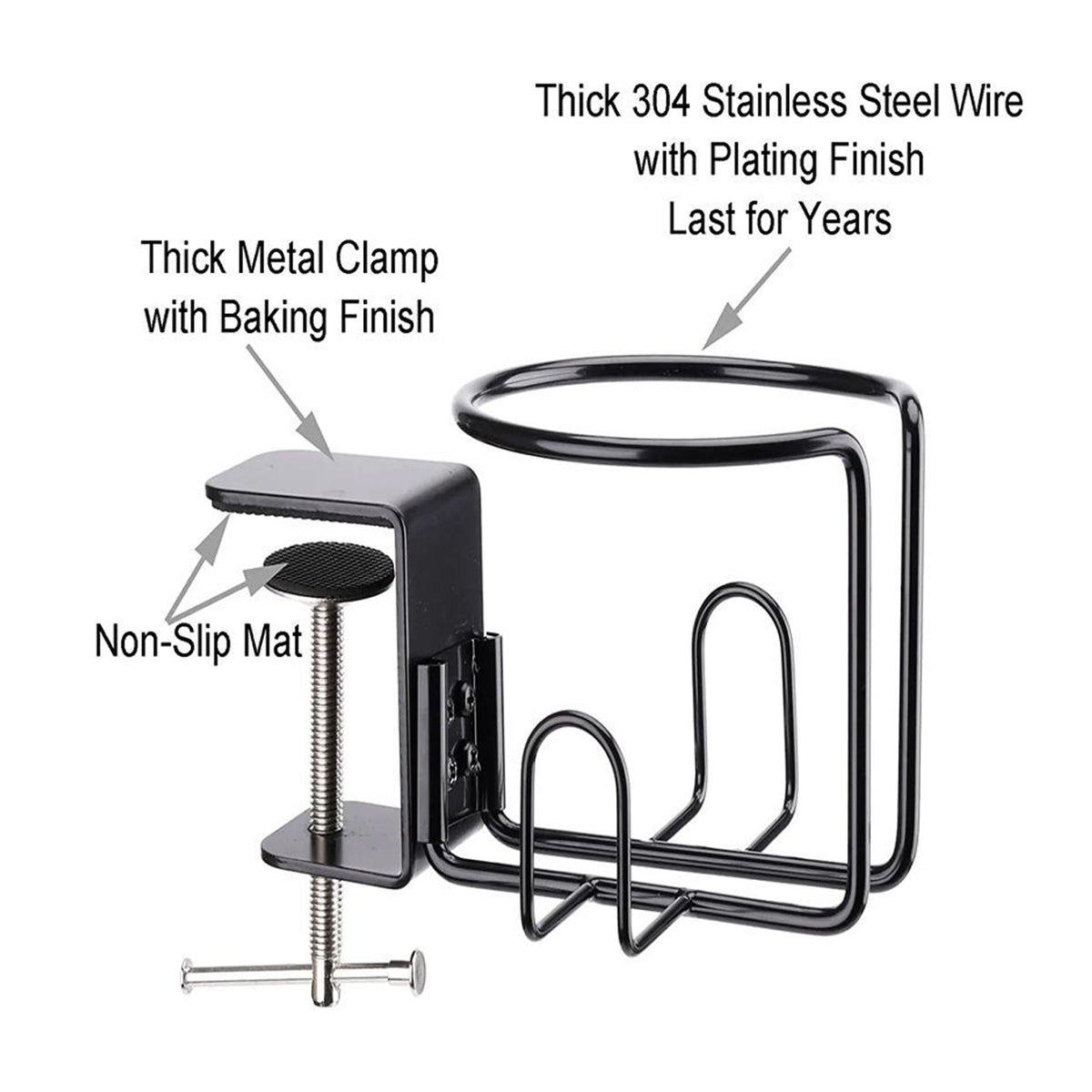 Clip-On Table Cup Holder Metal Cup Tray Adjustable Clip Anti-Slip Base Stable