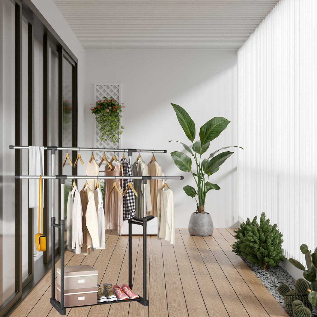Clothes Drying Rack Adjustable Height Telescopic Stable Base Space-Saving