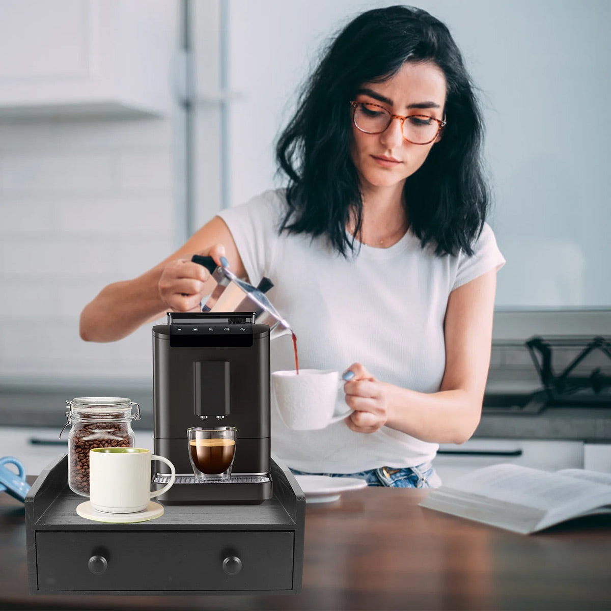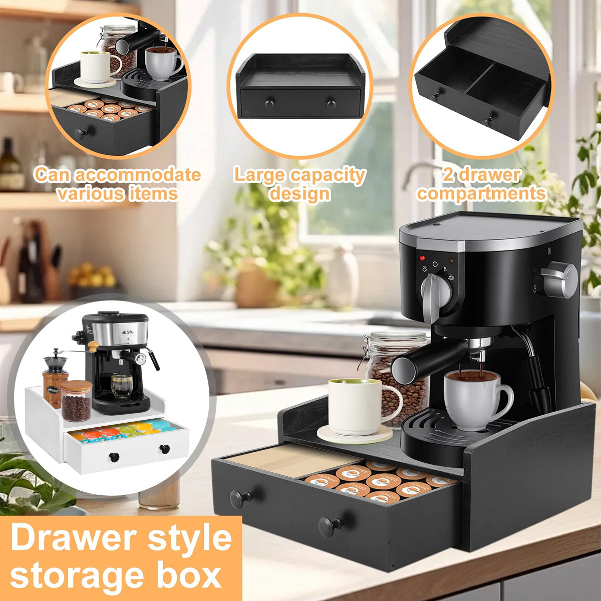 Coffee Drawer Style Storage Box Wooden Large Capacity for Accessories Storage