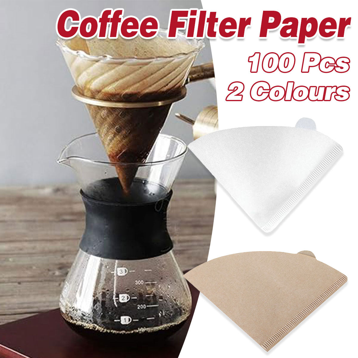 Coffee Filter Paper 100PCS Model A Conical Natural Paper For Drip Coffee Machine