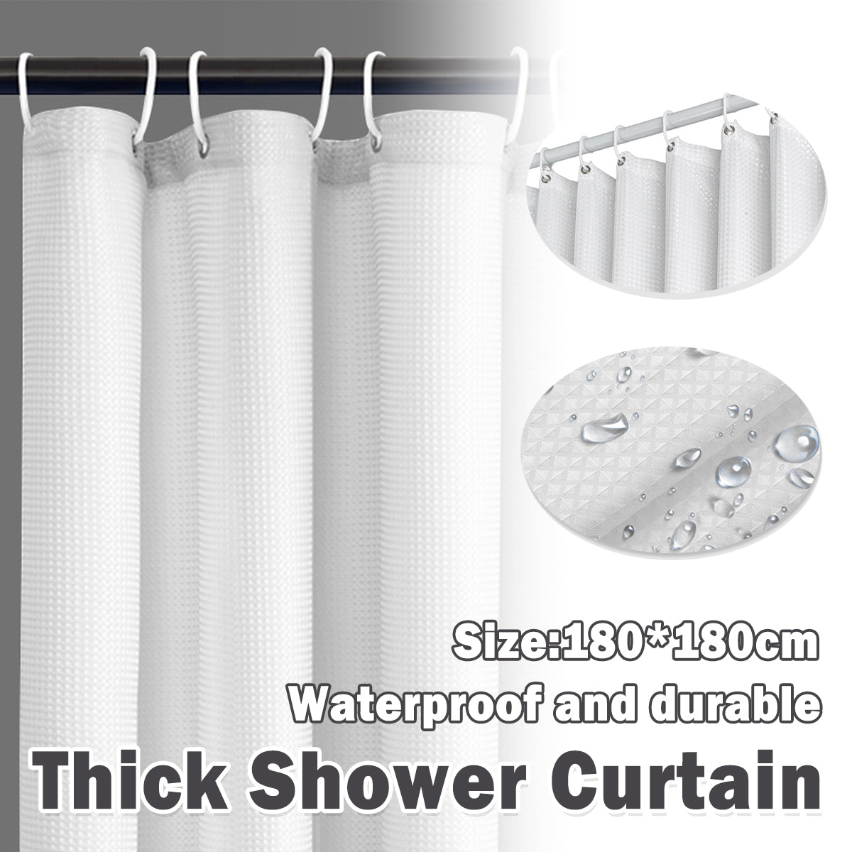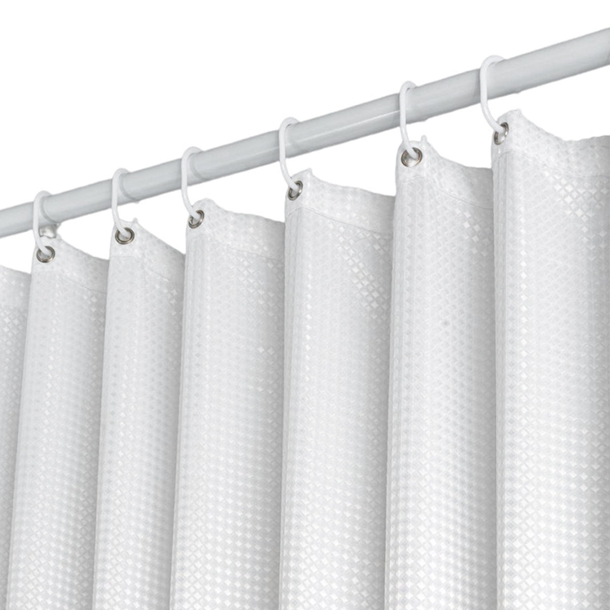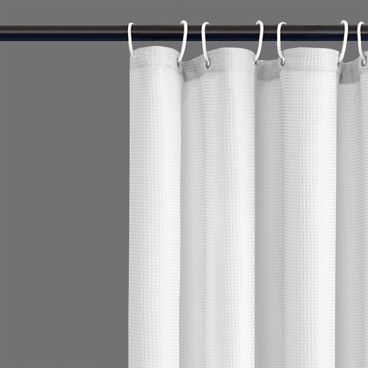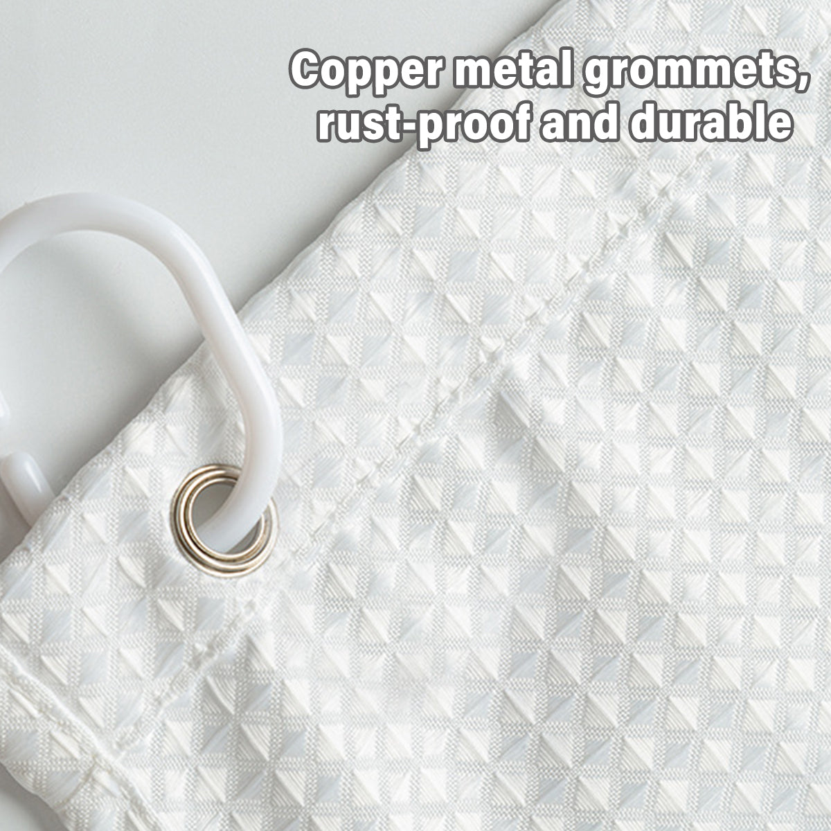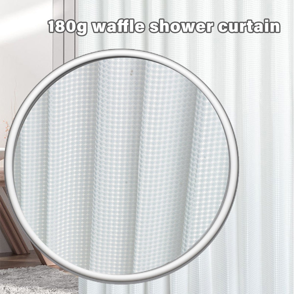 Cold White Waffle Shower Curtain Waterproof Bathroom Curtain Perforation Free