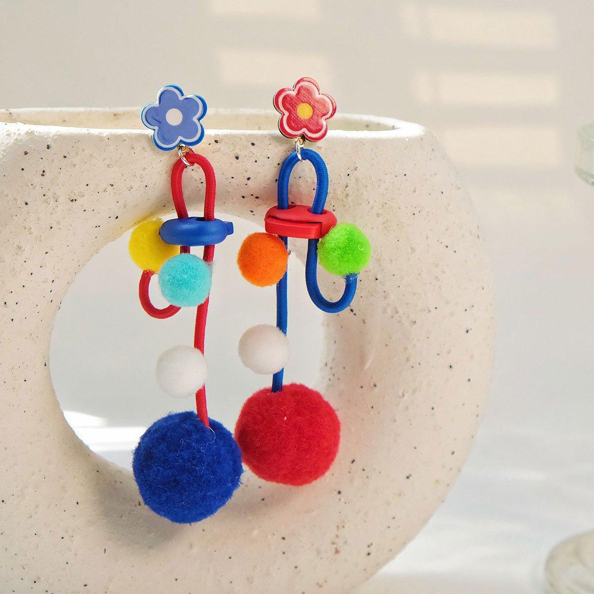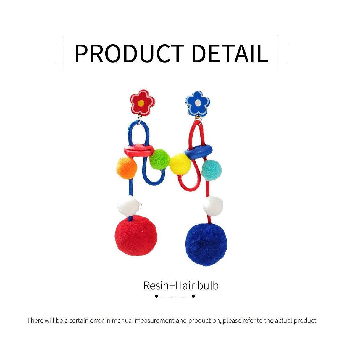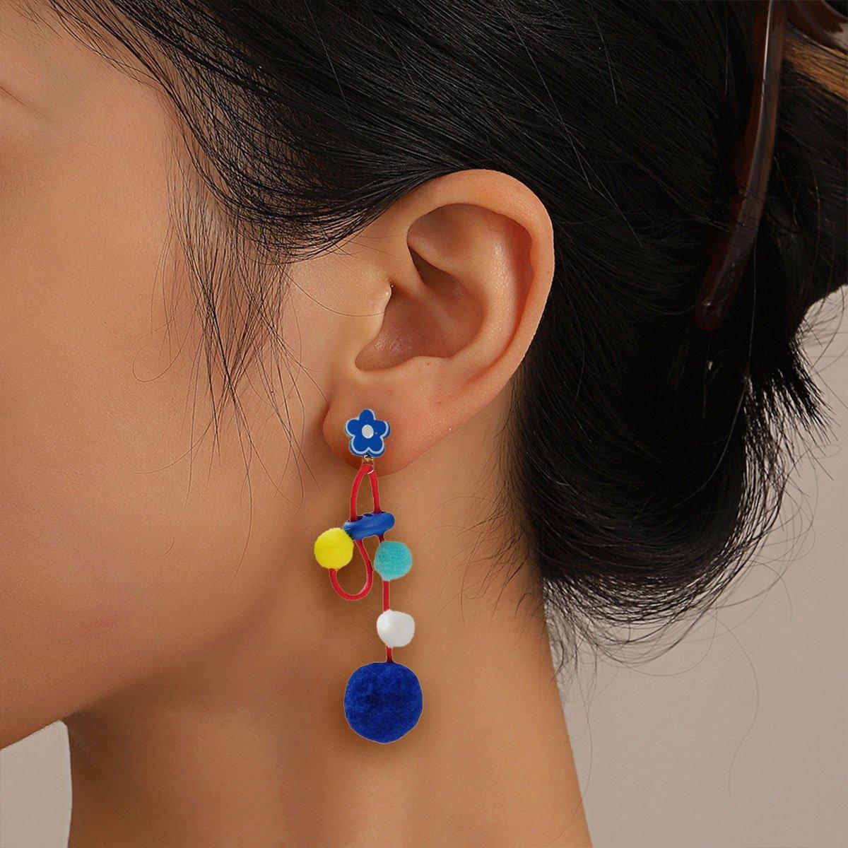 Colour Matching Hairball Earrings Long Fringe Bohemian Style Statement Jewelry