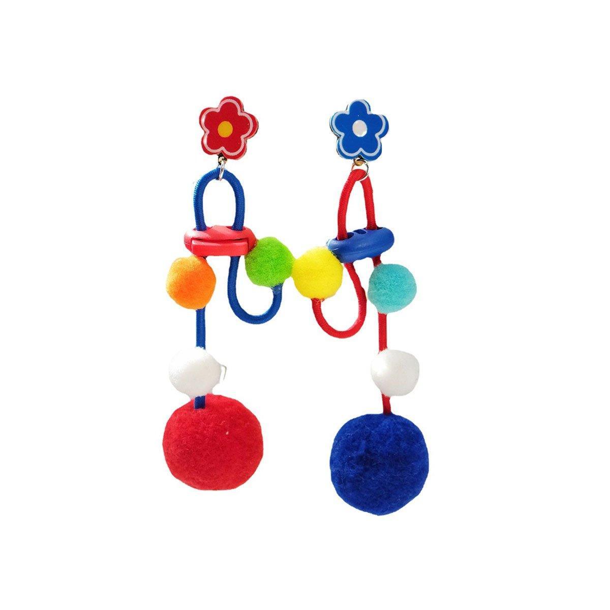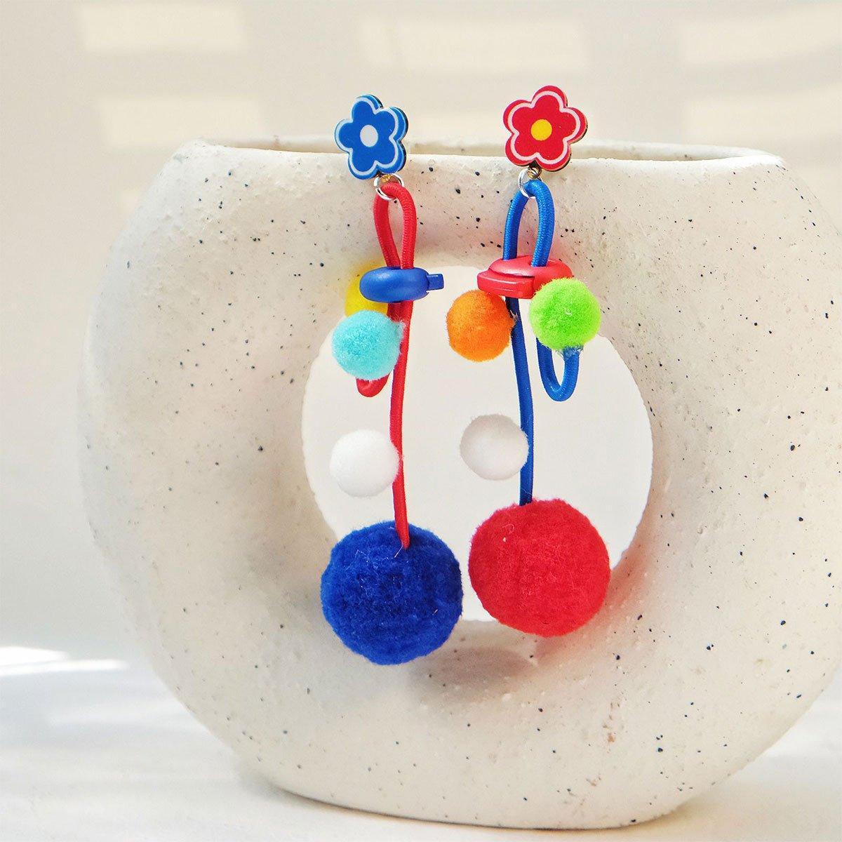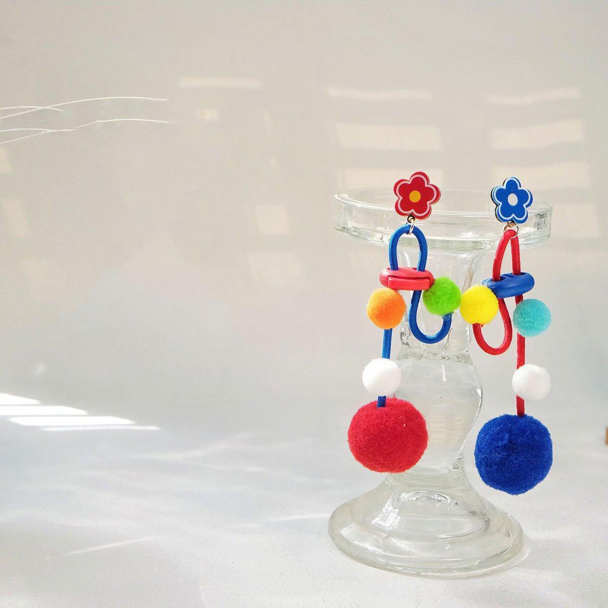 Colour Matching Hairball Earrings Long Fringe Bohemian Style Statement Jewelry