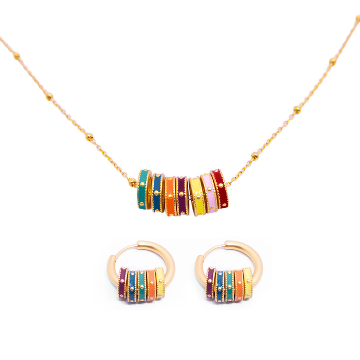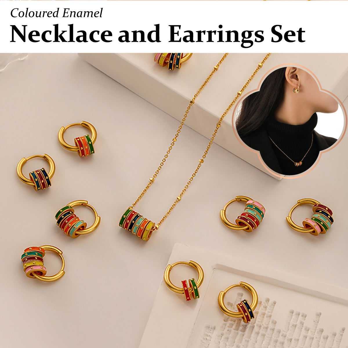 Colourful Enamel Hoop Earrings or Pendant Necklace Fashion Jewellery Gift
