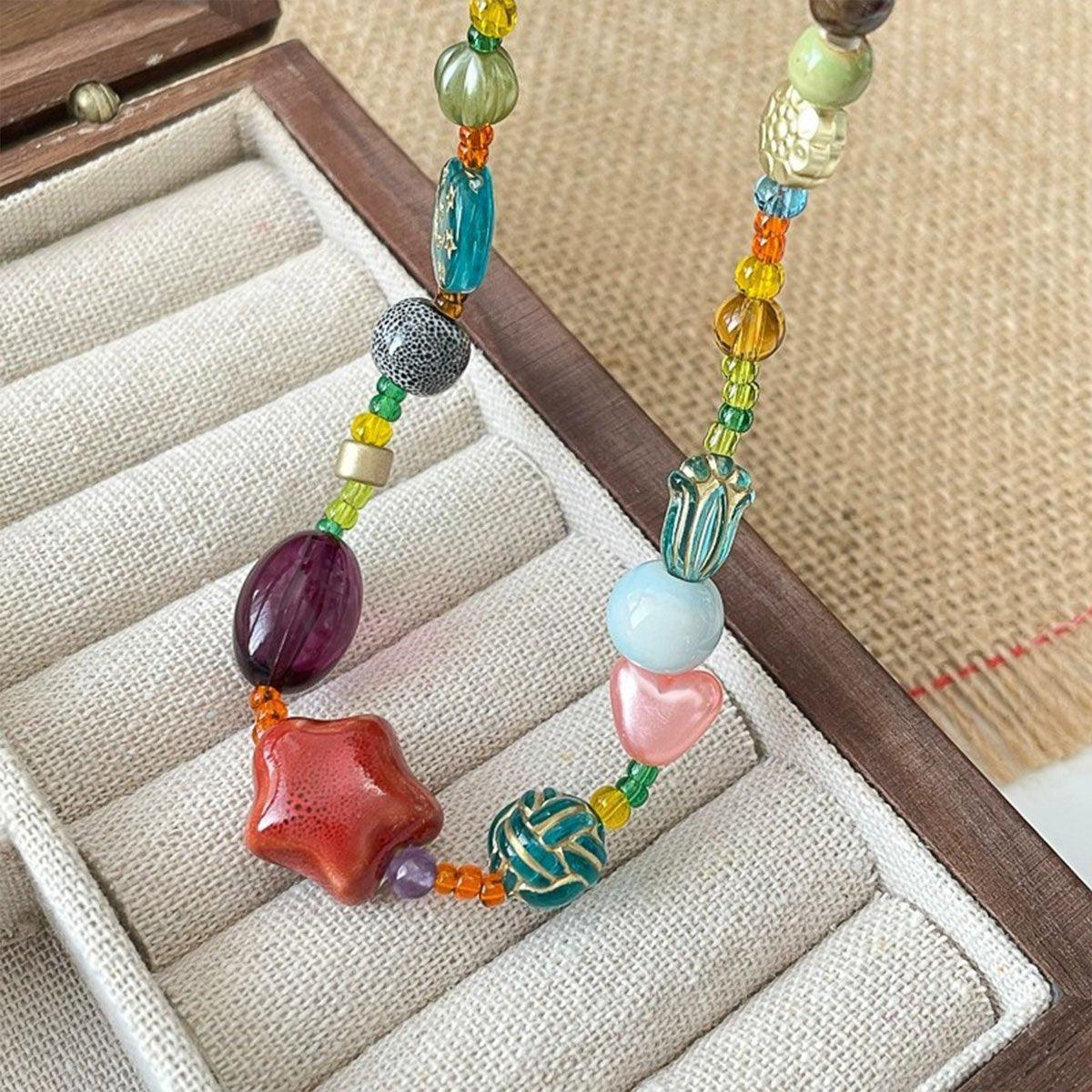Colourful Ethnic Vintage Beaded Necklace Bracelet Ring Set Boho Jewelry Girl