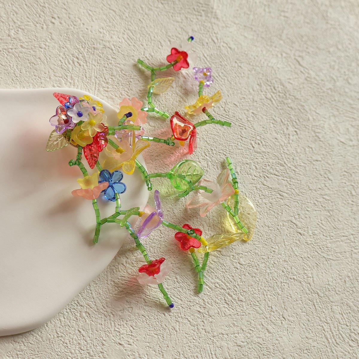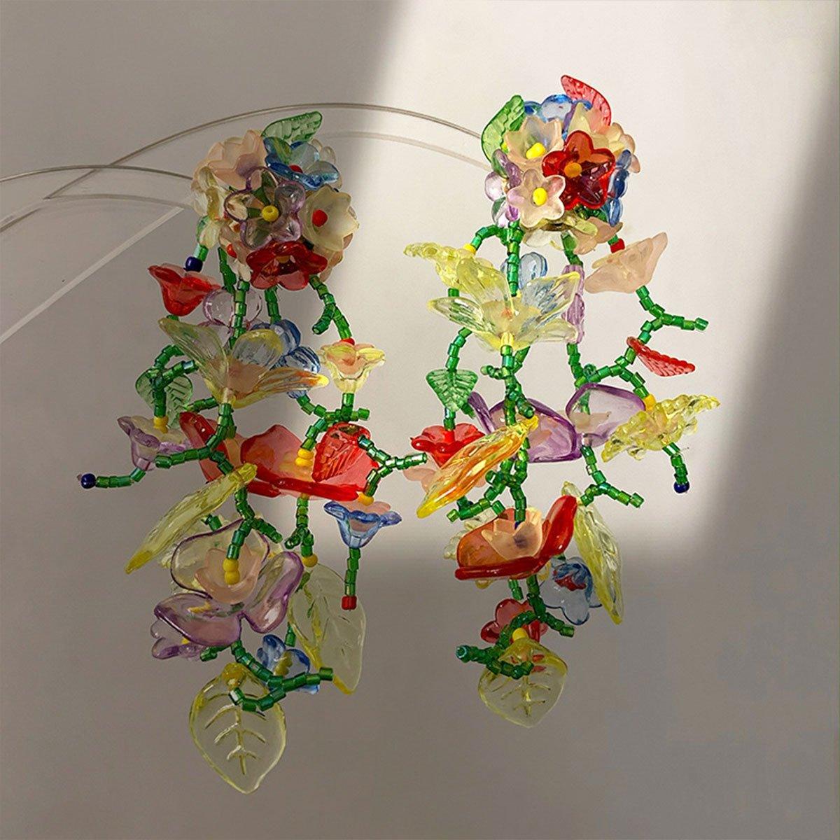 Colourful Flower Long Drop Earrings Elegant Sweet Jewelry for Women Fashion Gift
