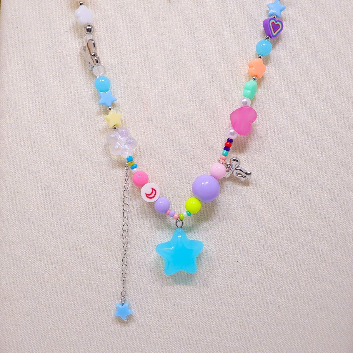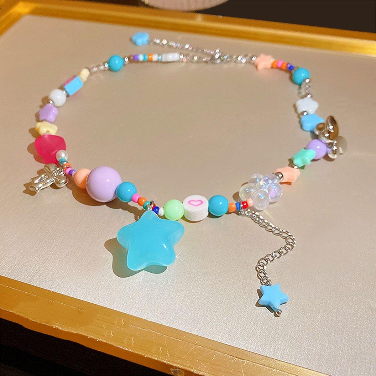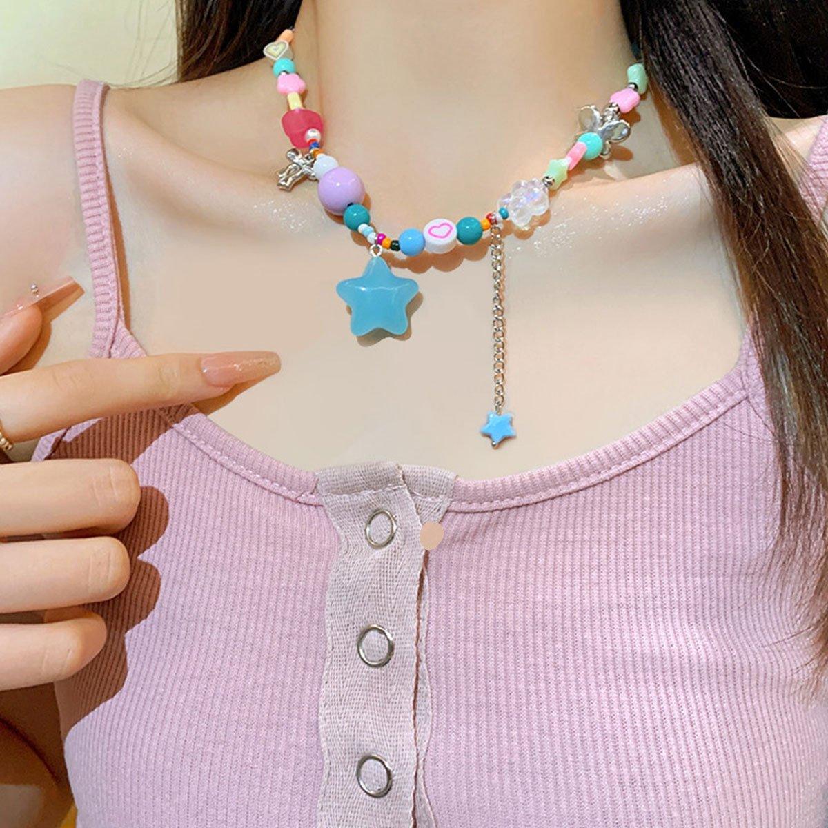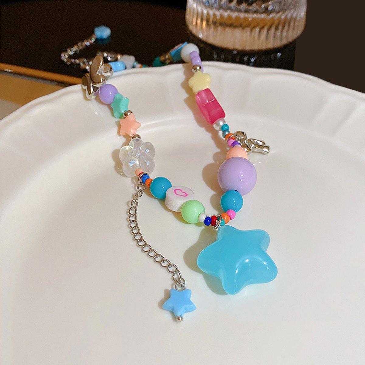 Colourful Love Pentagram Dopamine Necklace Fashion Jewellery Women Girls