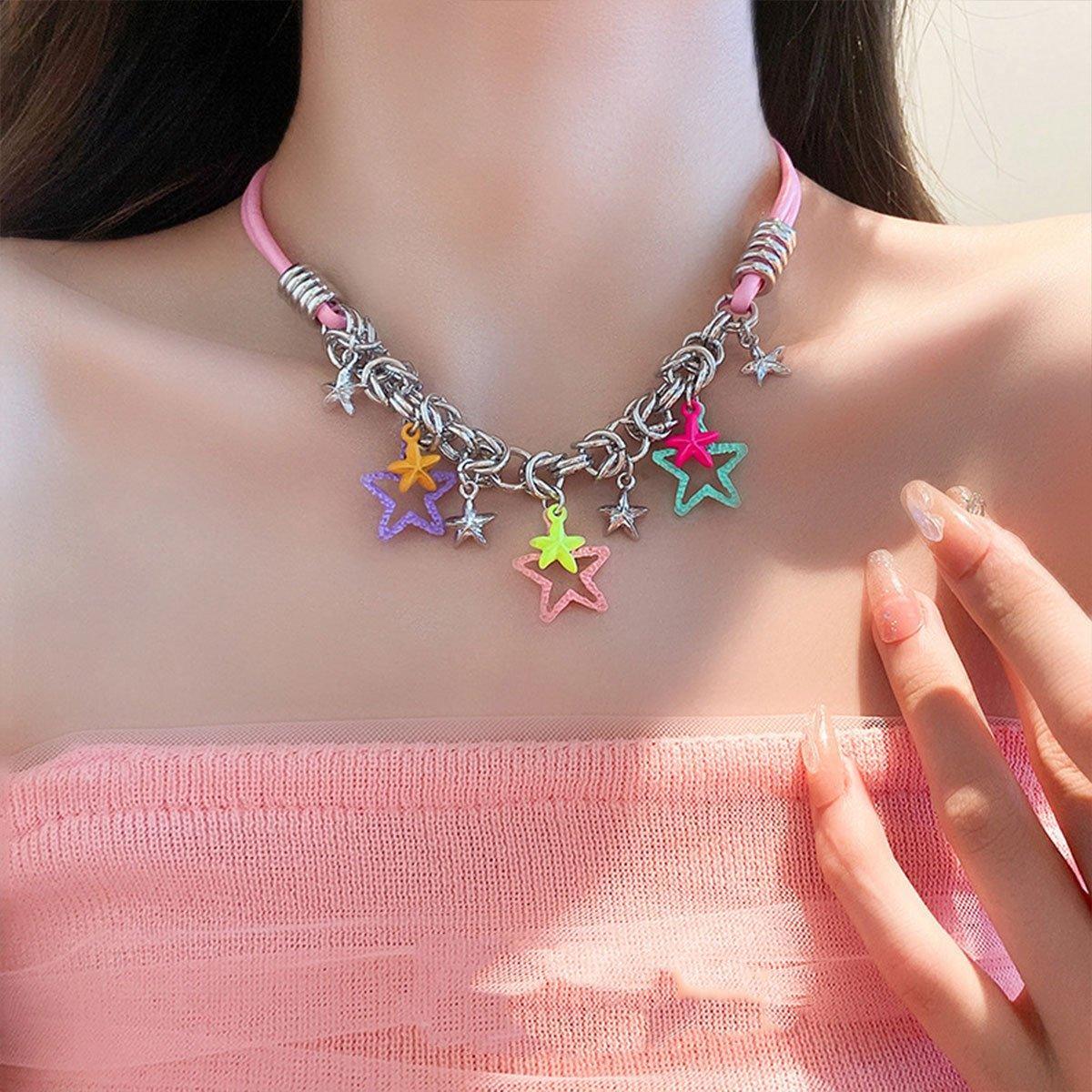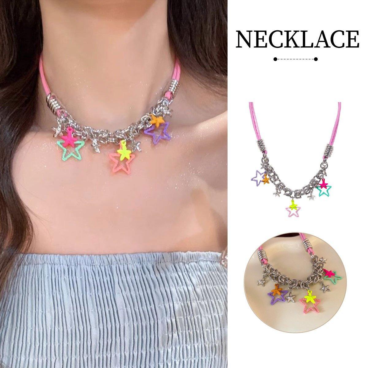 Colourful Star Pendant Necklace Fashion Jewellery Women Girls Trendy Gift