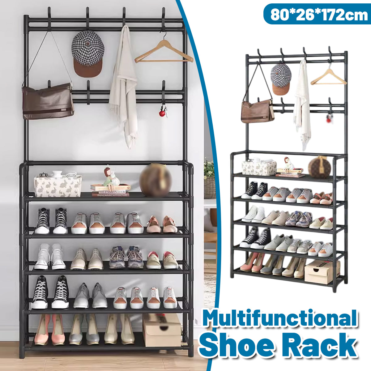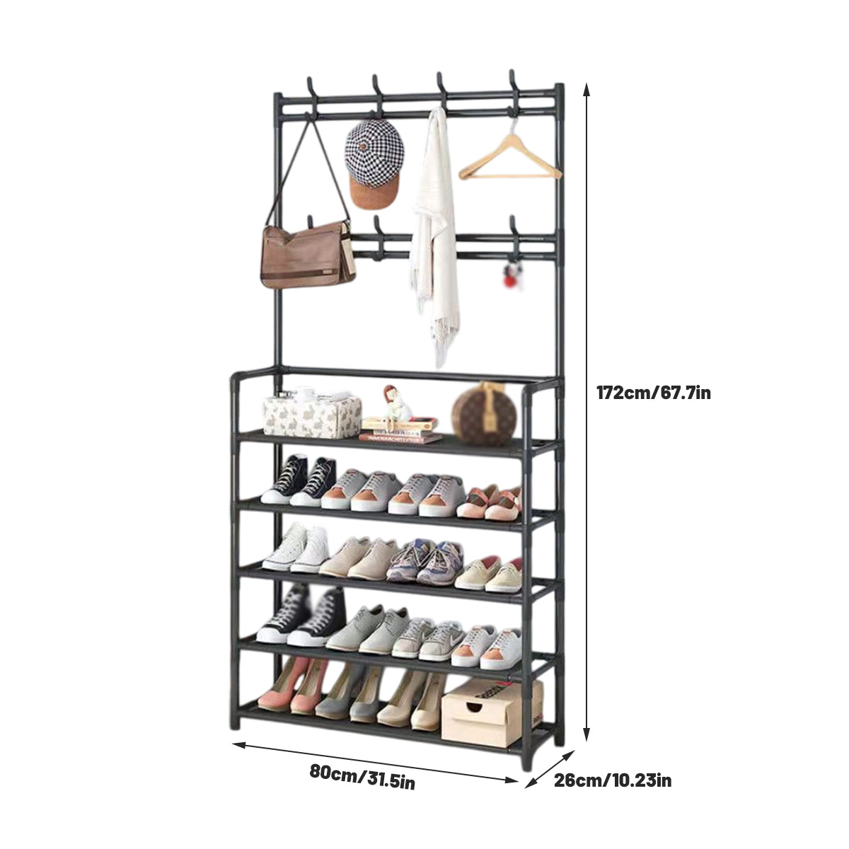 Combined Hat Shoe Coat Rack All in One Entryway Shoe Stand Clothes Hanger