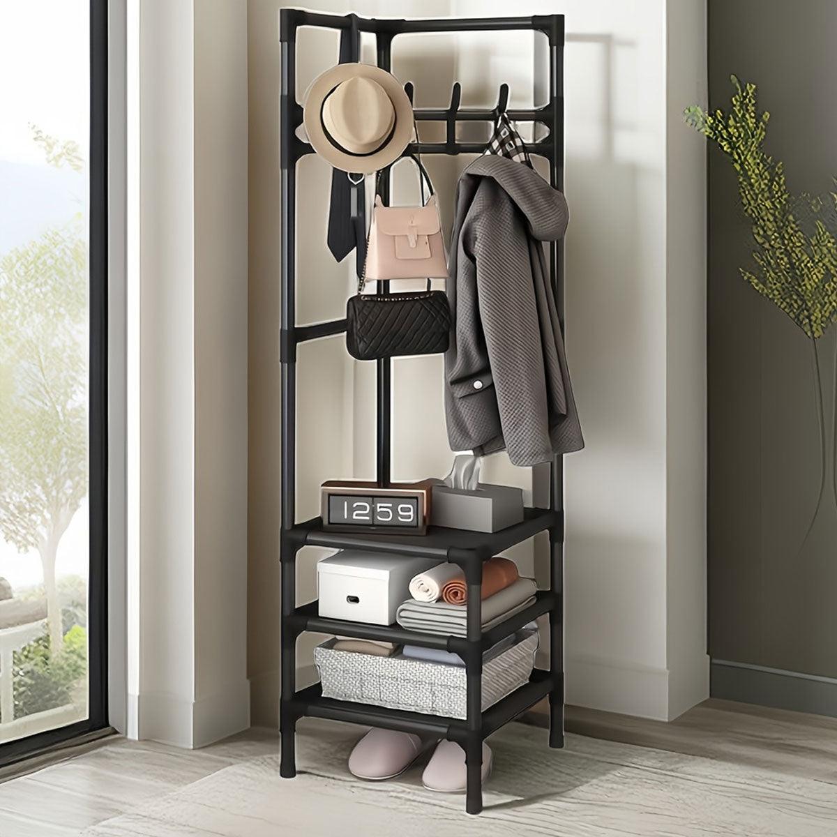 Corner Coat Clothes Stand Rack Hat Shoes Racks Thicken Hanger Shelf Organizer