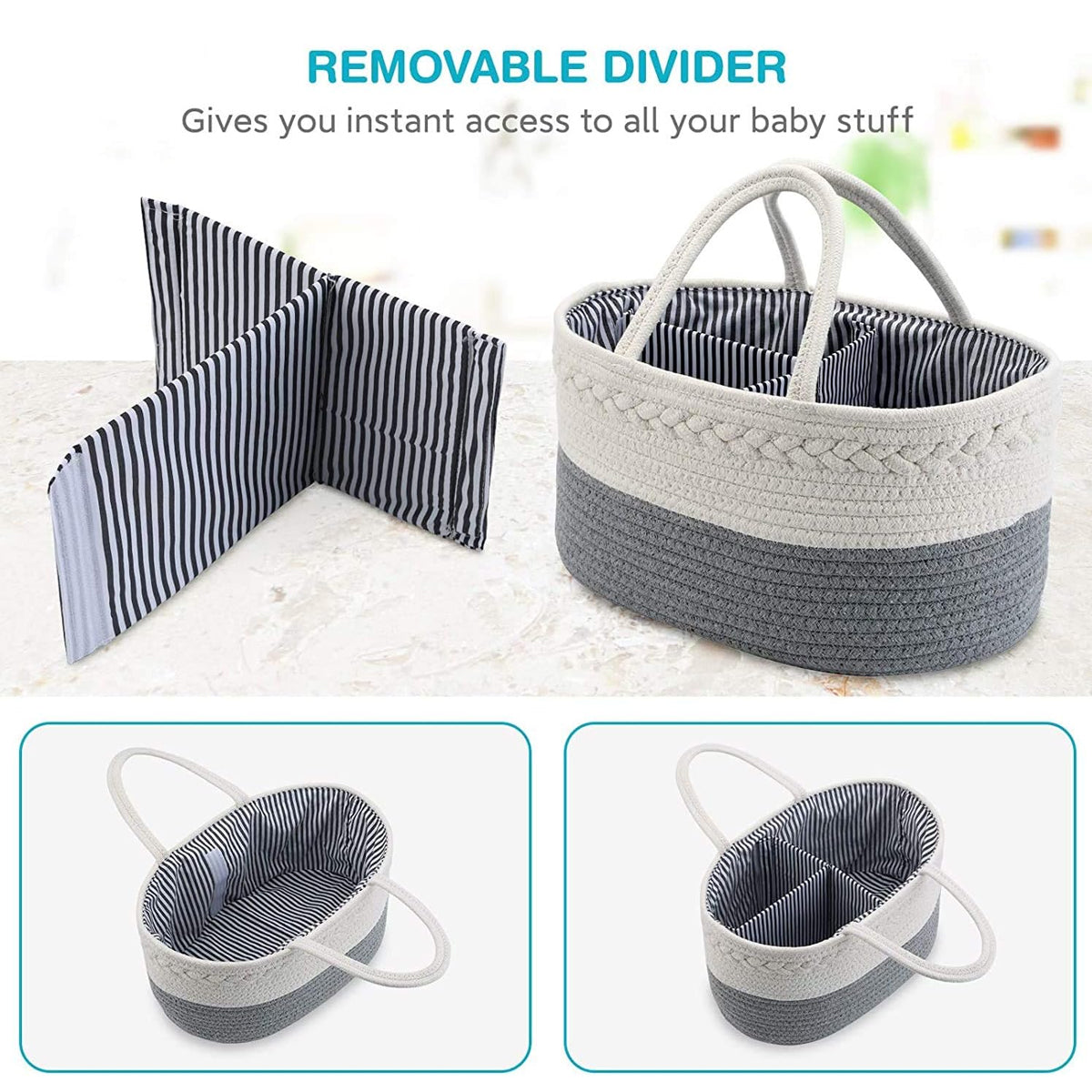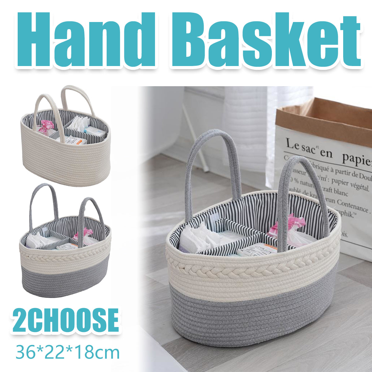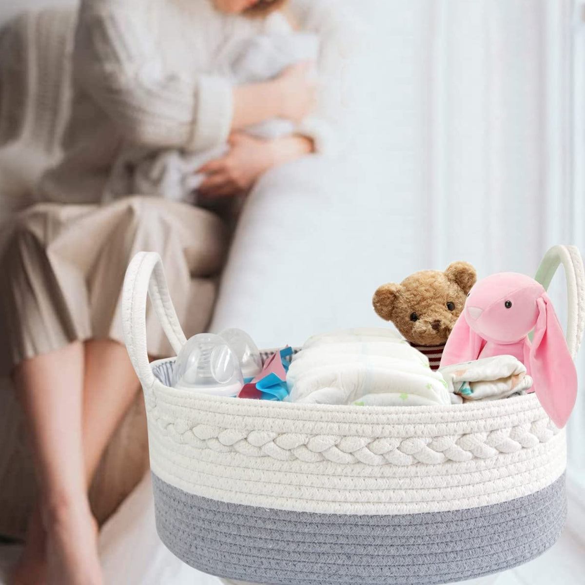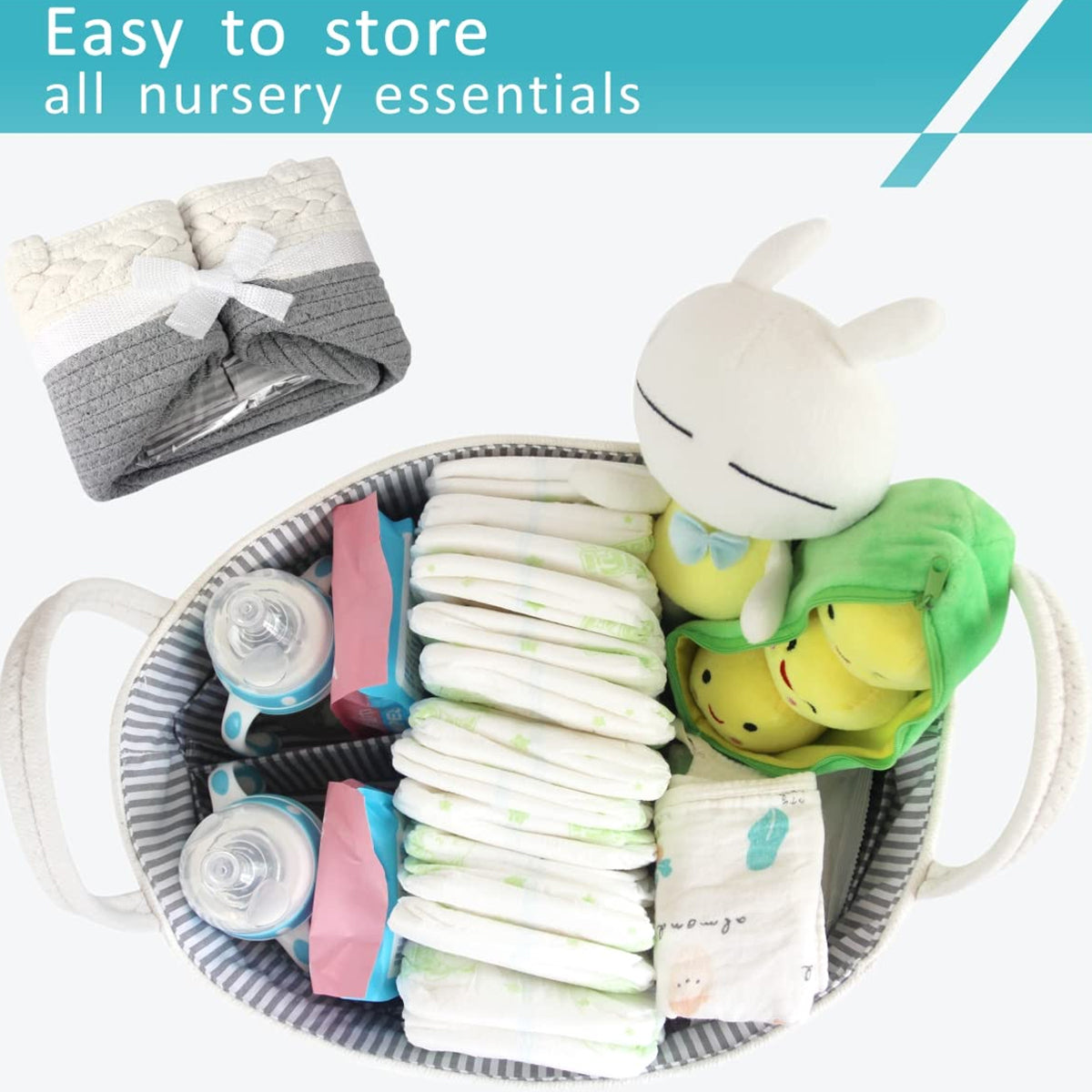 Cotton Rope Diaper Basket Organizer Toy Storage Bin Removable with Handles
