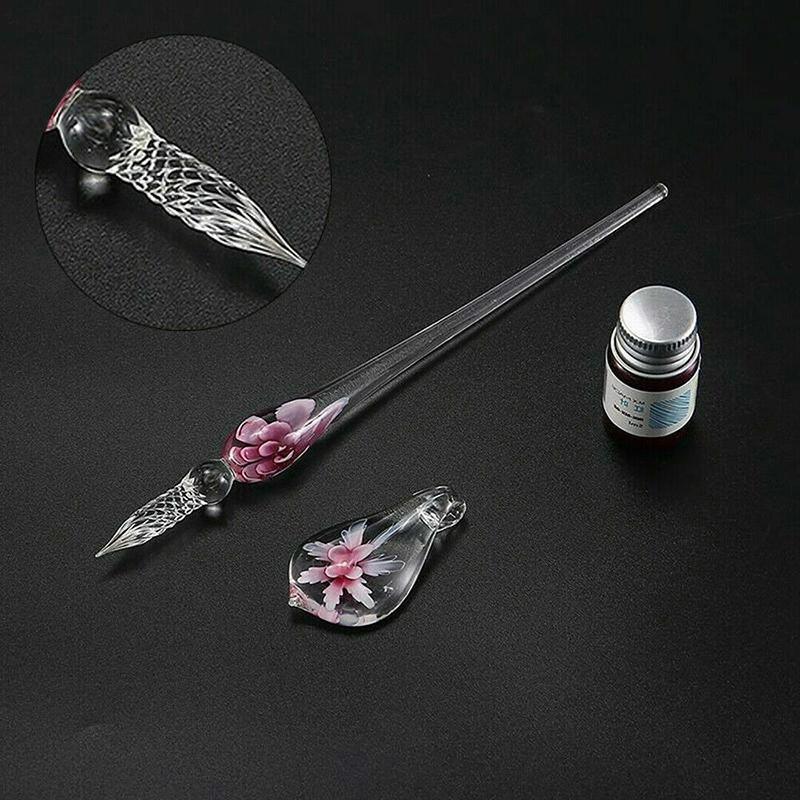 Crystal Flower Glass Dipping Dip Pen Writing Set Gift Pack Fountain Calligraphy