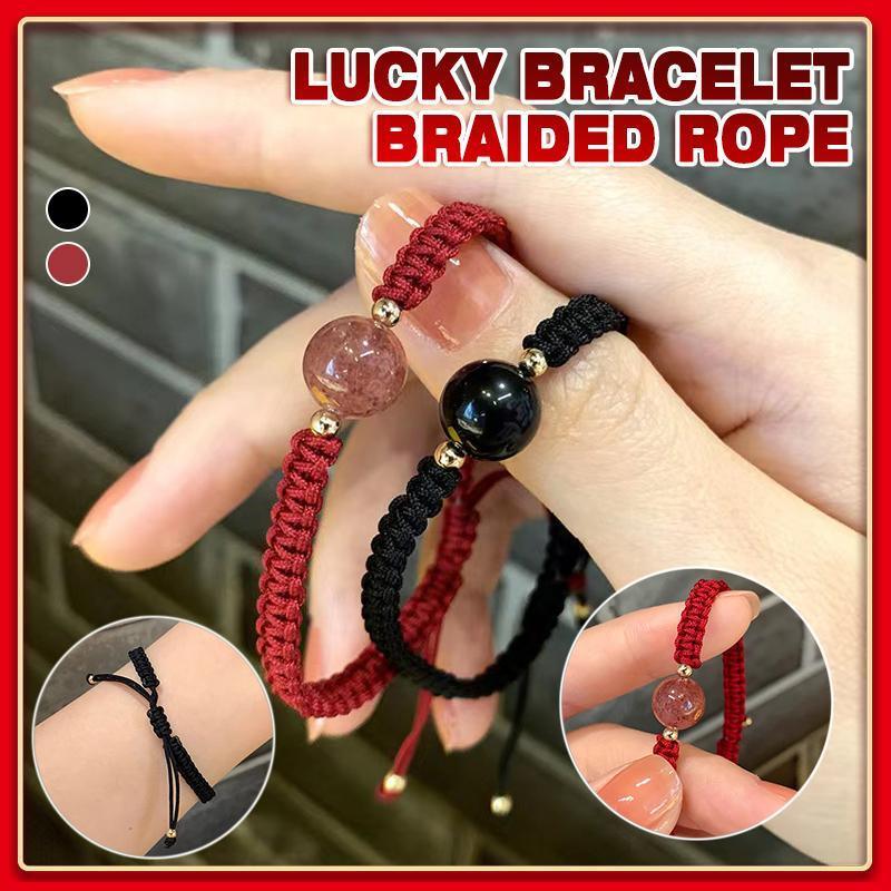 Crystal Peach Blossom Braided Rope Lucky Beads Bracelet Couples Women Men Gift
