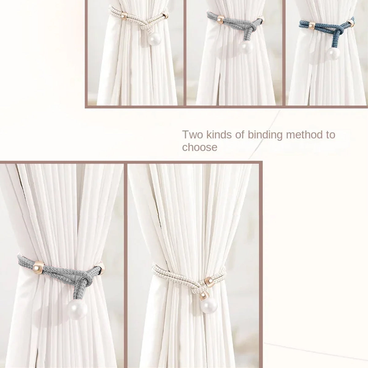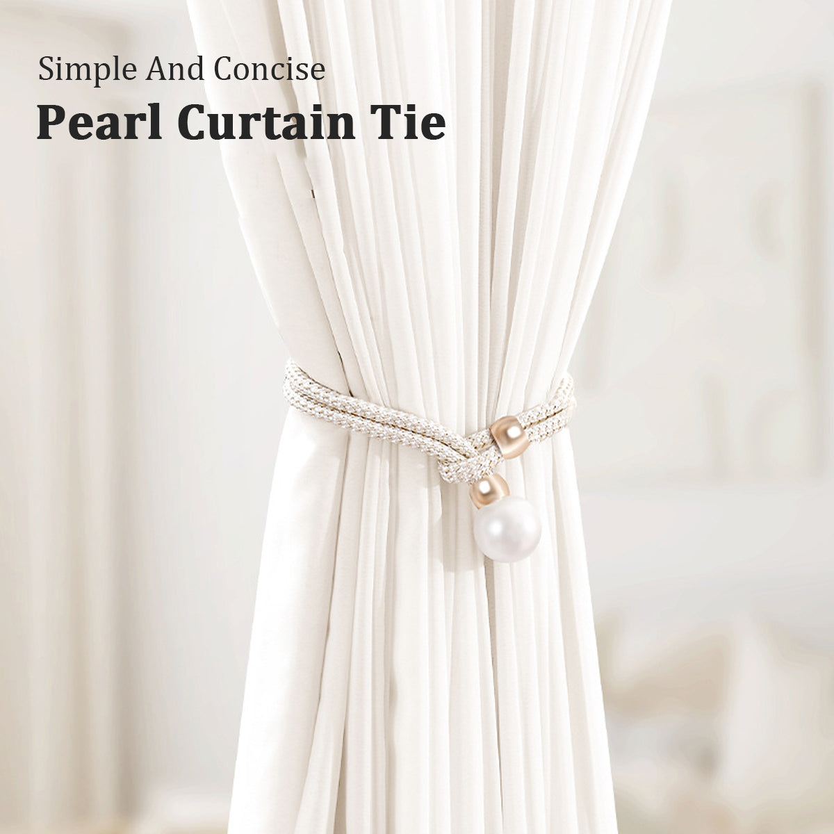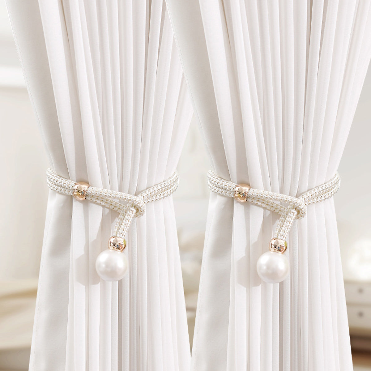 Curtain Tiebacks Pearl Strap Set 3 Pairs Decorative Buckle Holder Rings Hooks