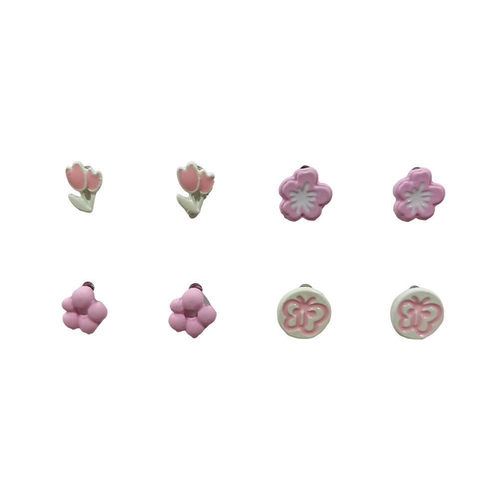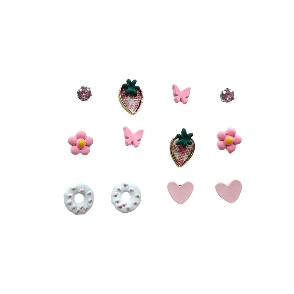 Cute Pink Stud Earrings Set for Women Girls Simple Fashion Jewelry Accessories