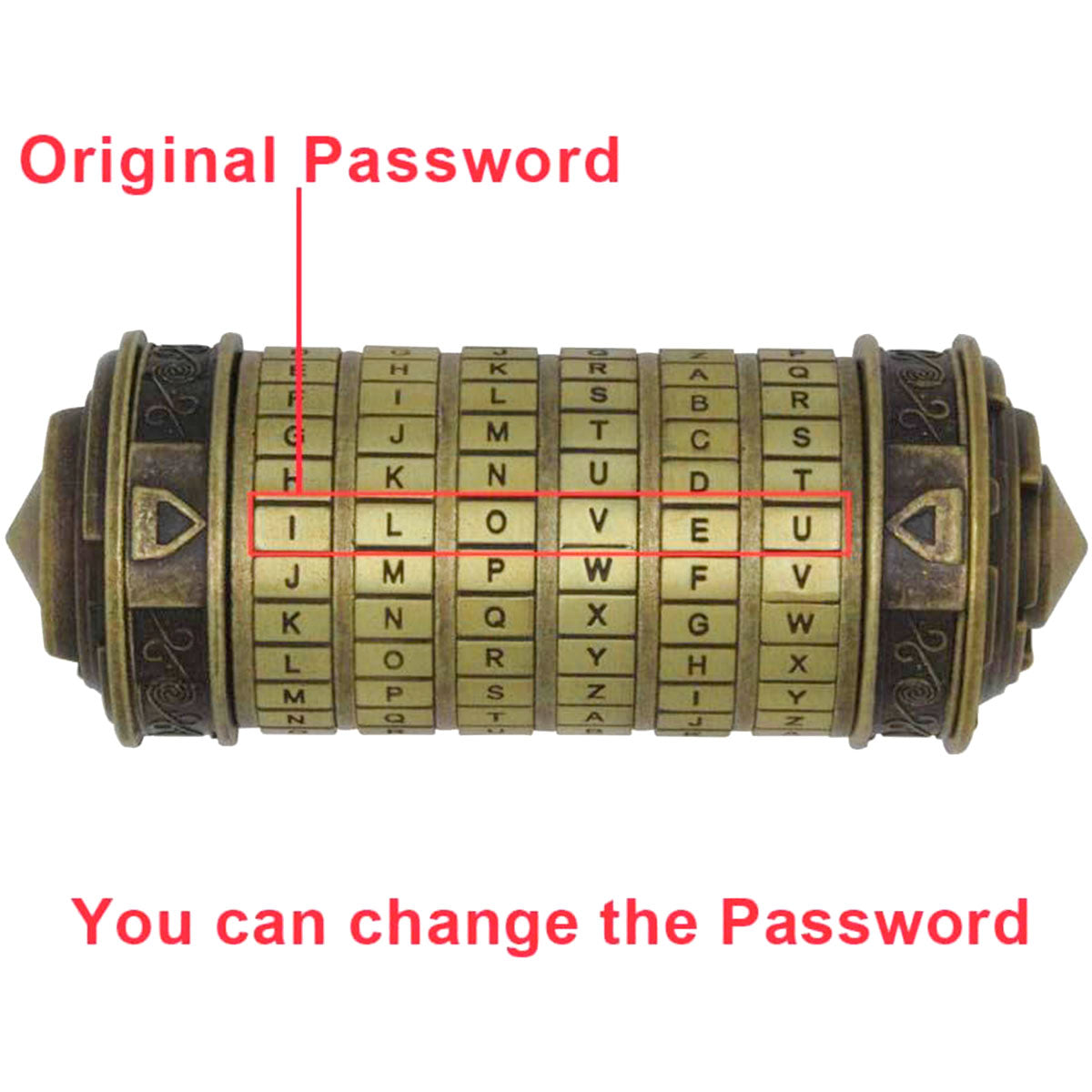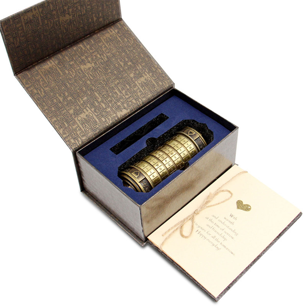 Da Vinci Code Lock Cylinder Vintage Puzzle Box Secret Compartment Bronze Style