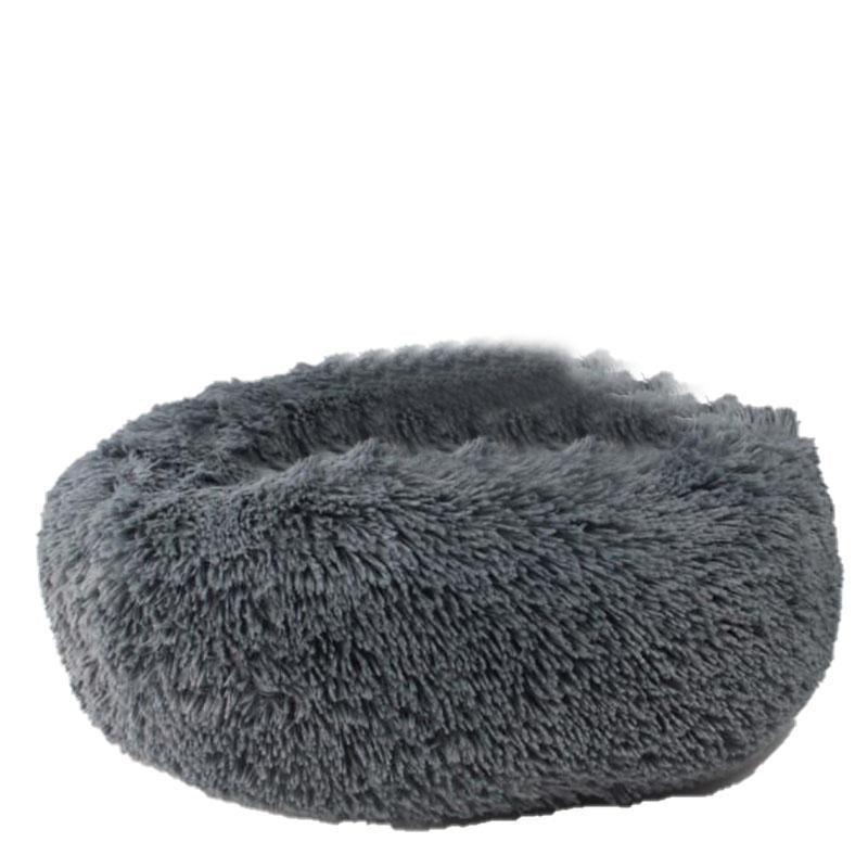 Dark Grey Cozy Plush Cat Dog Bed Soothing Donut Cushion Nest Washable Pet Sleeping Kennel