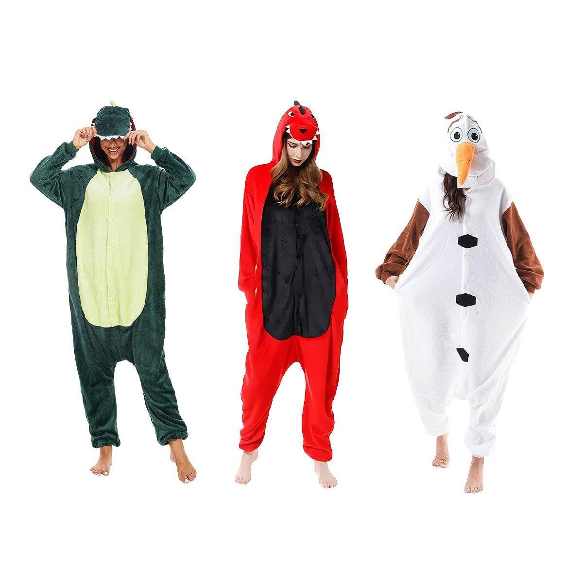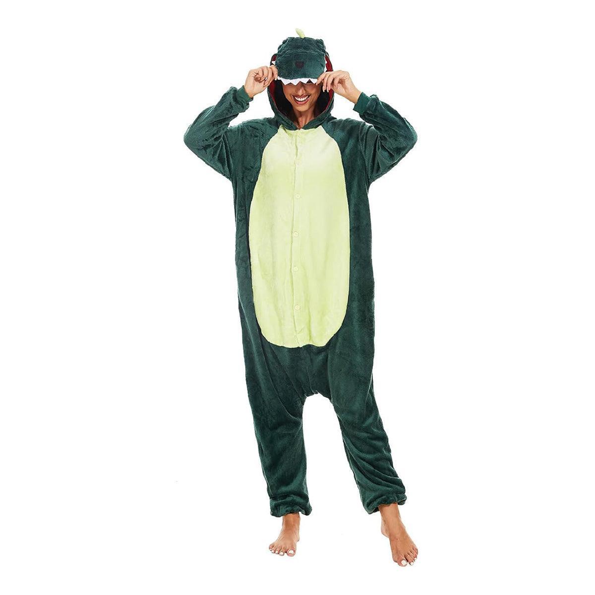 Dinosaur Cartoon Flannel Pajamas One Piece Fall Winter Homewear Sleepwear