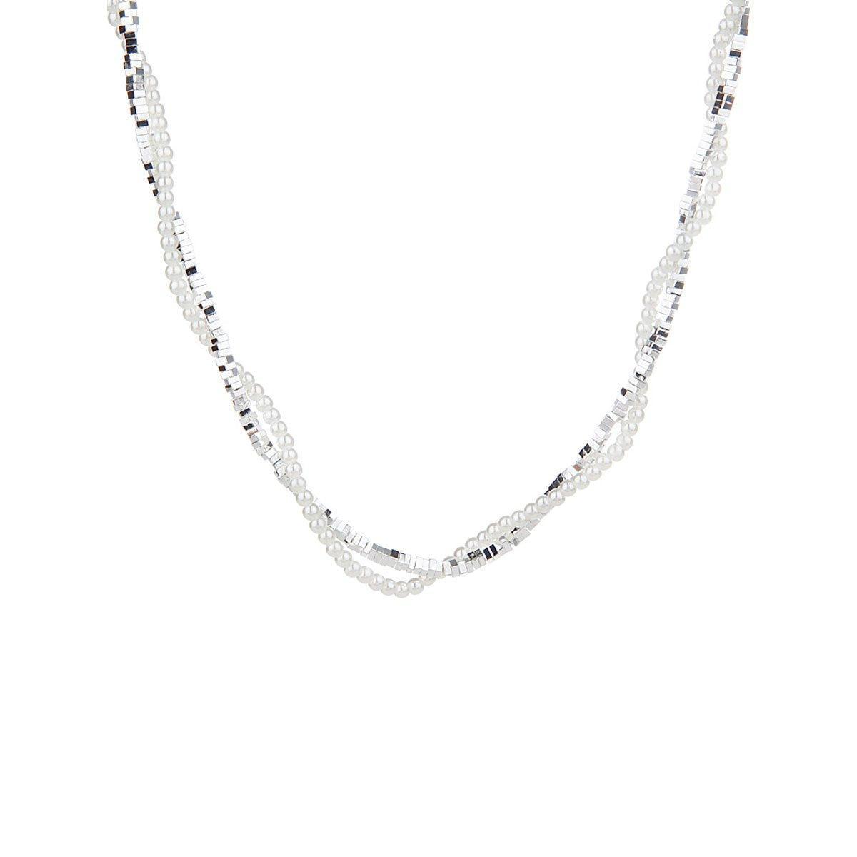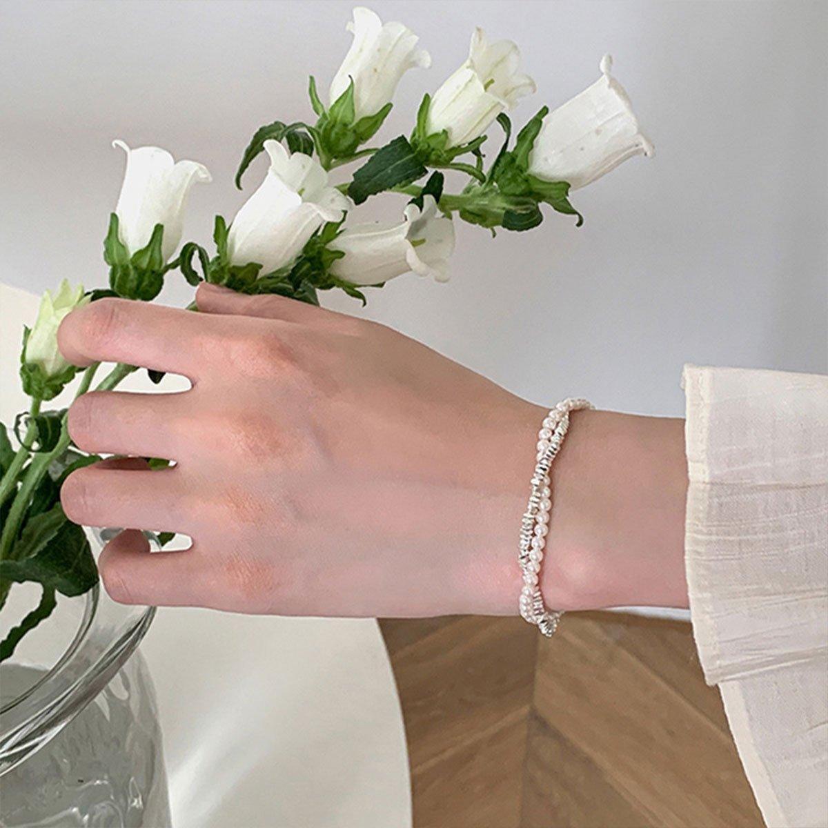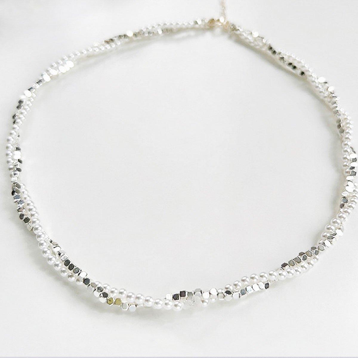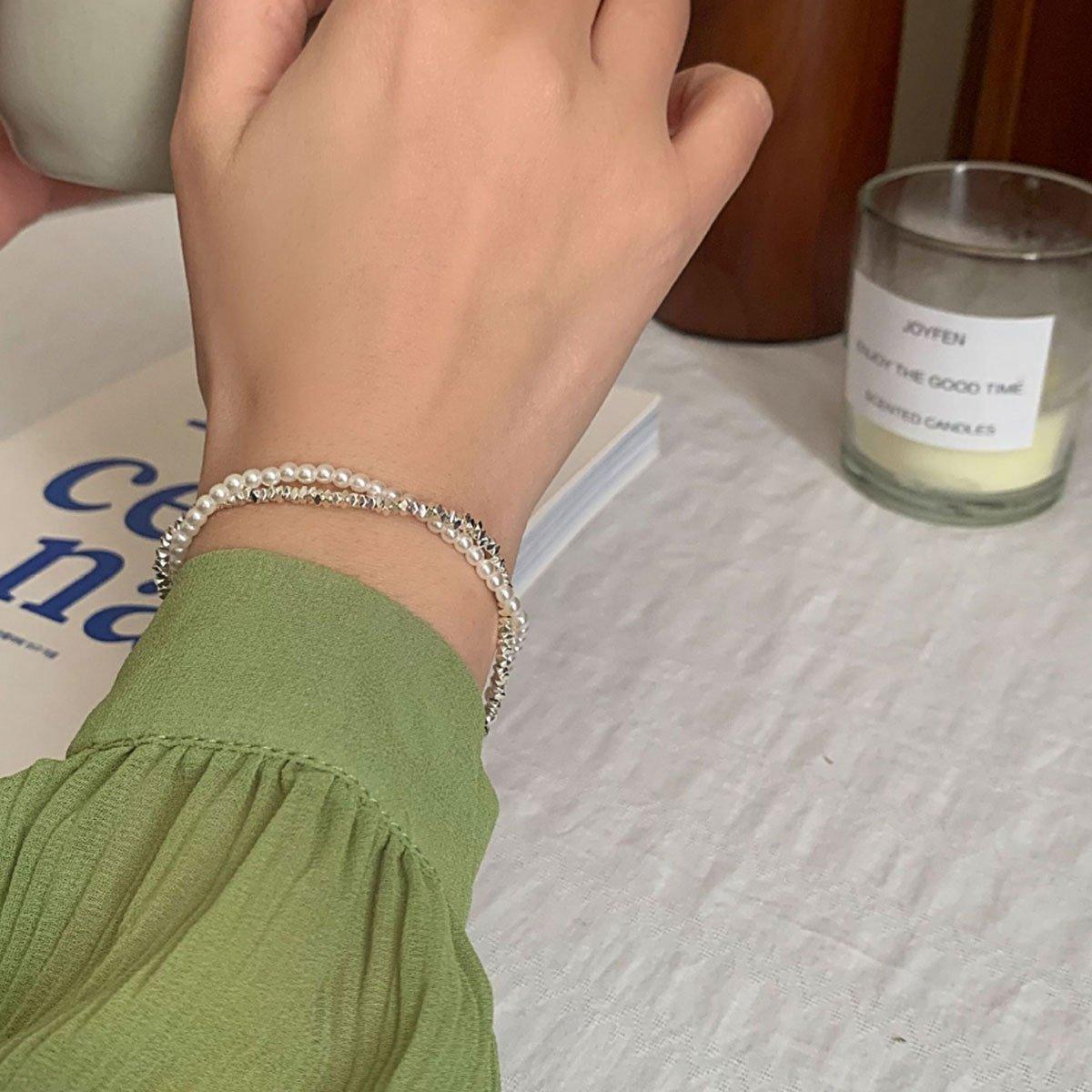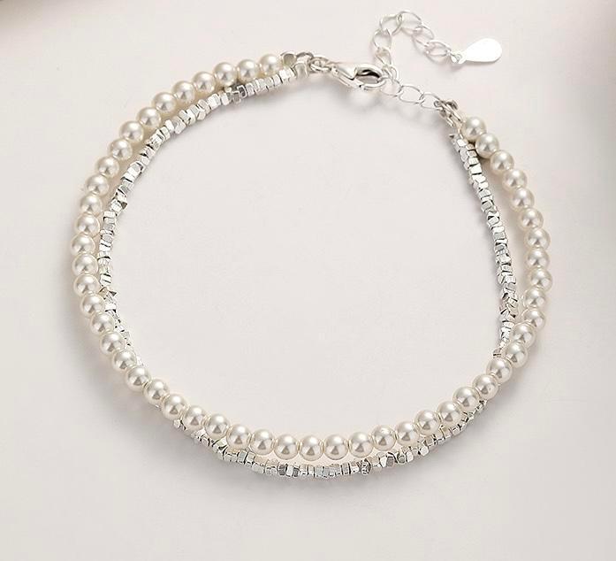 Double Layered Pearl Necklace Bracelet Set Silver Jewelry Women Fashion