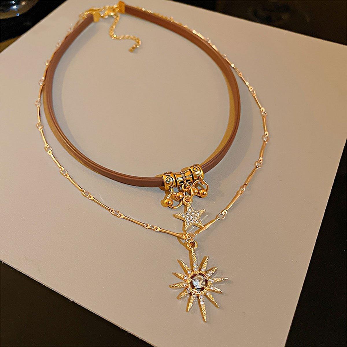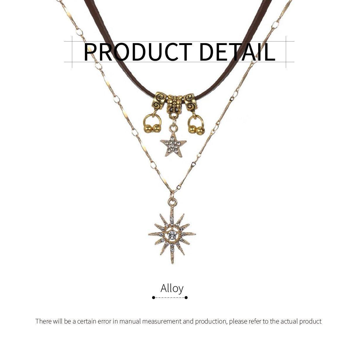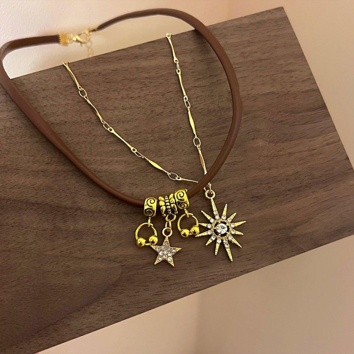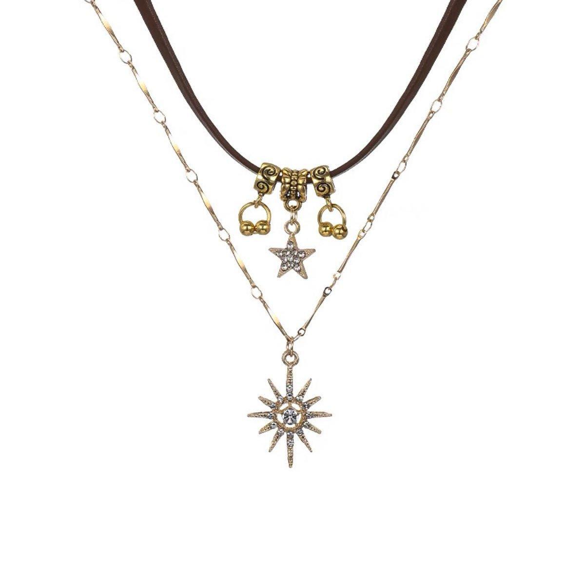 Double Star Sun Pendant Necklace Hip Hop Jewelry Gold Silver Chain