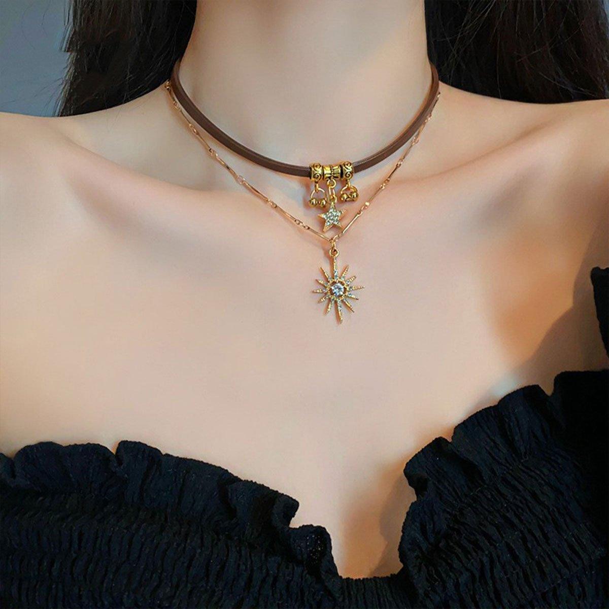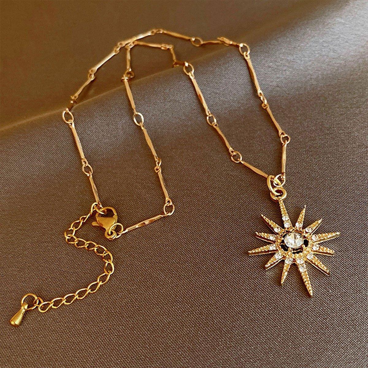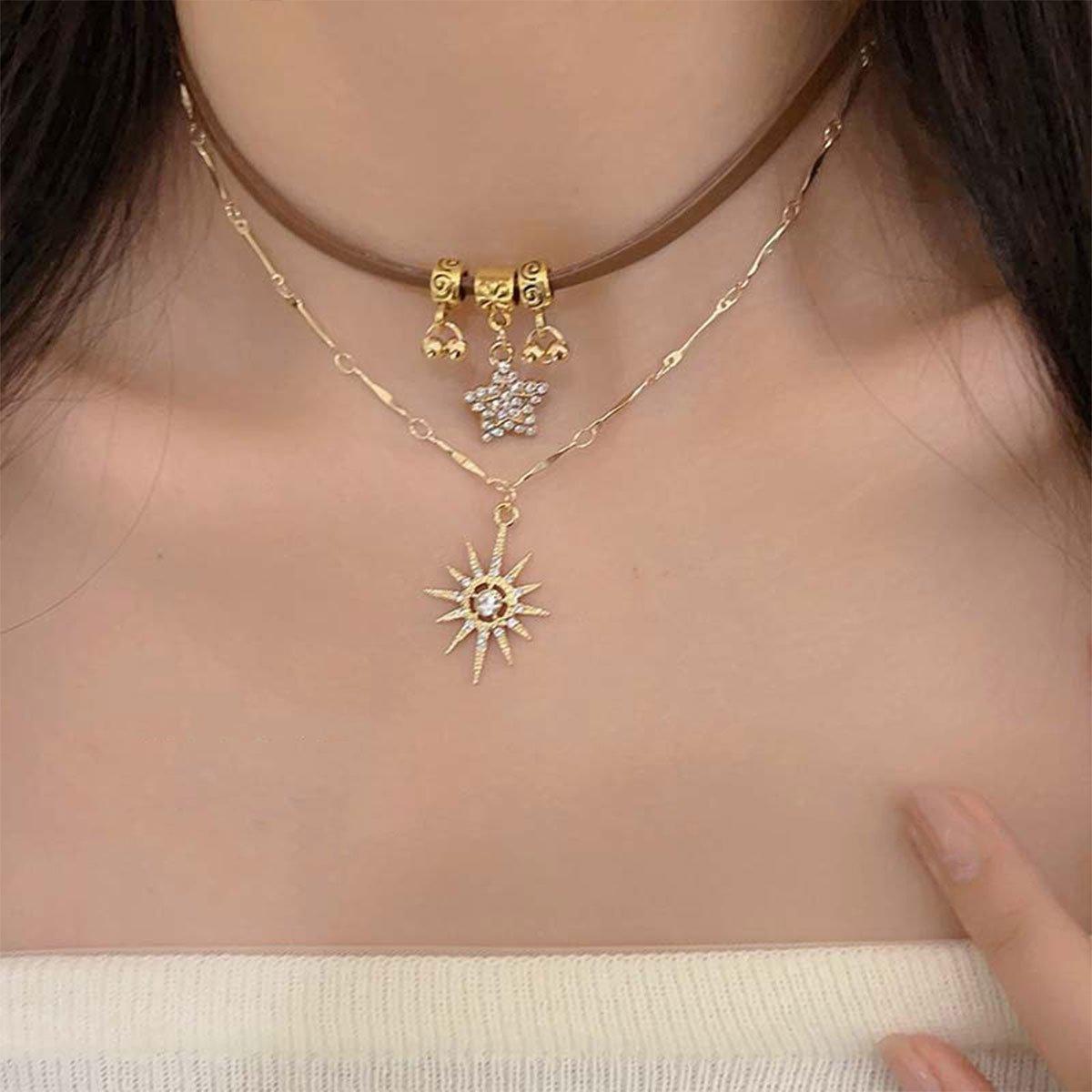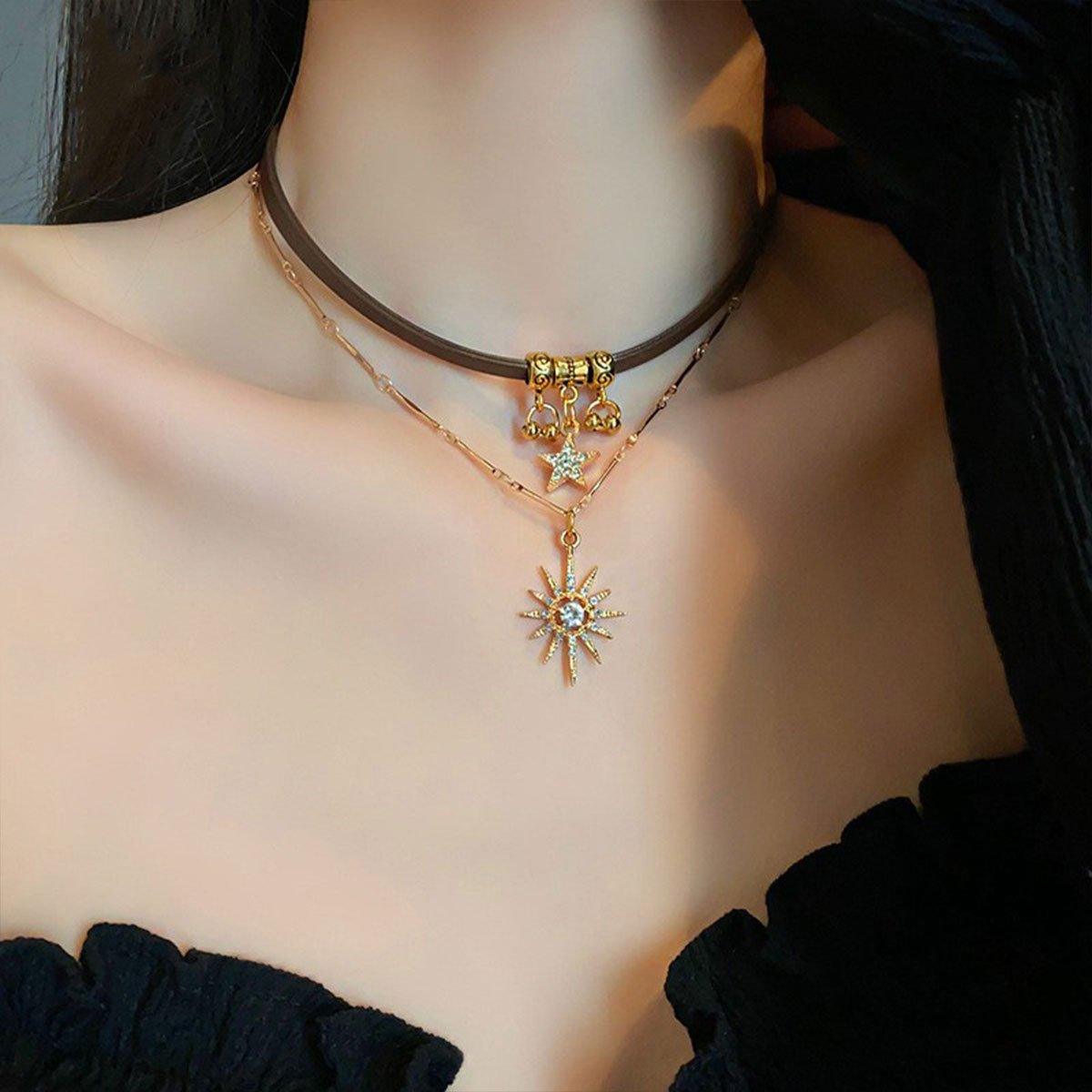 Double Star Sun Pendant Necklace Hip Hop Jewelry Gold Silver Chain