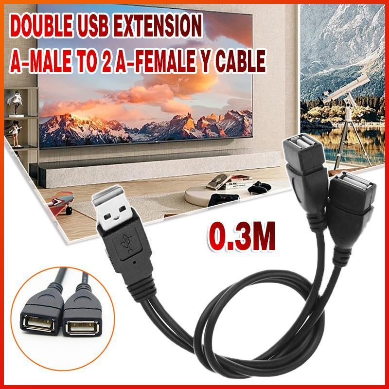 Double USB Extension A-Male to 2 A-Female Y Cable Cord Power Adapter Splitter