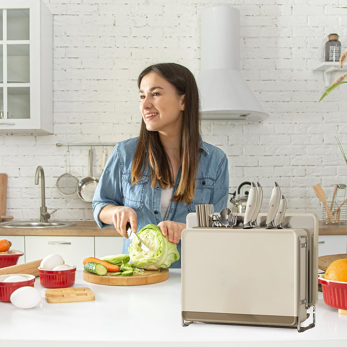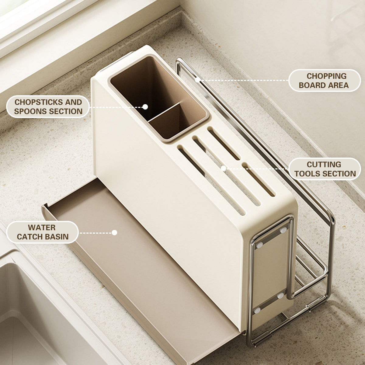 Draining Countertop Knife Cutlery Storage Rack for Kitchen Utensils Space Saving
