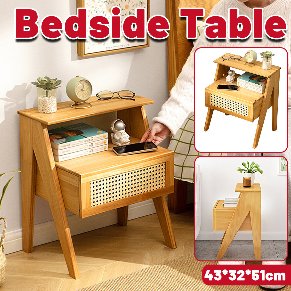 Drawer Bedroom Nightstand With Drawer Large Storage Stable Structure SpaceSaving
