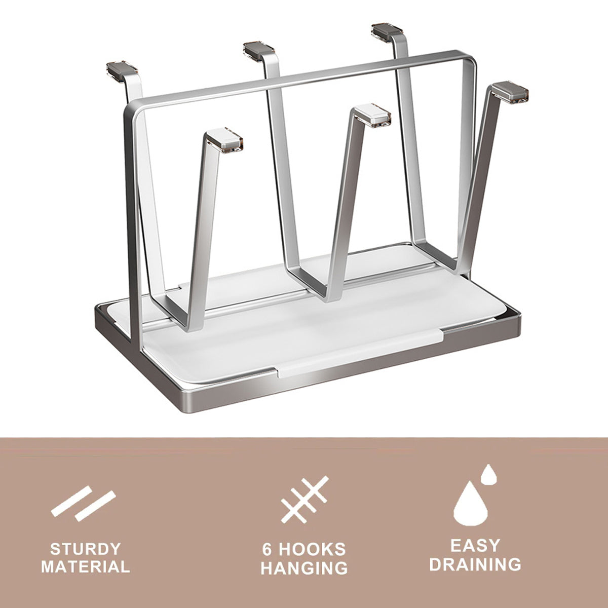 Drying Stainless Steel Cup Holder 6 Hook for Coffee Mug Glass Bottle Cup Durable