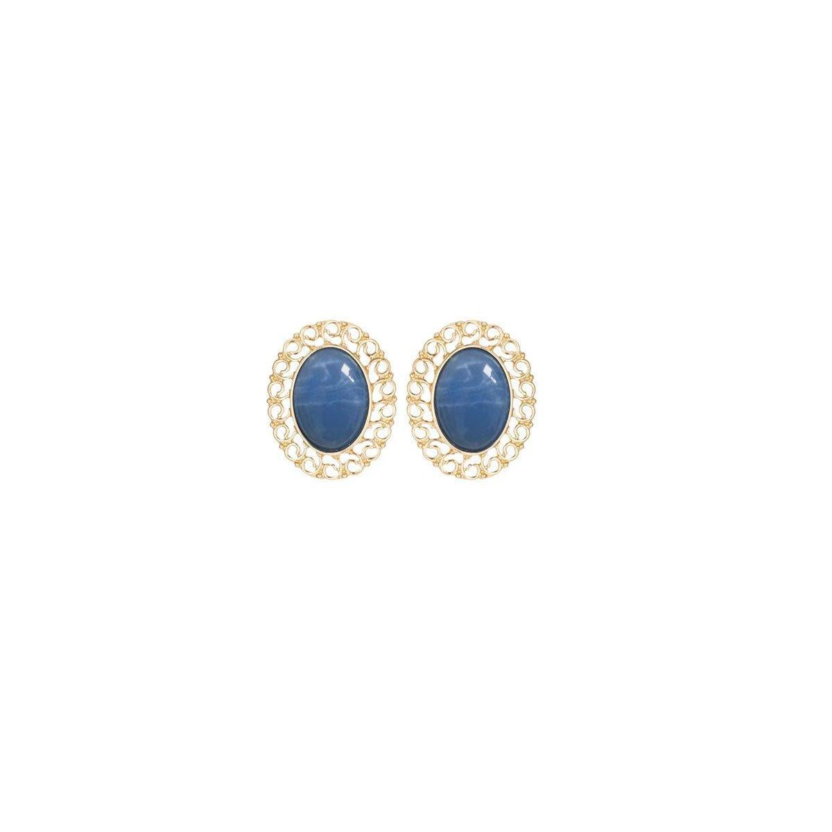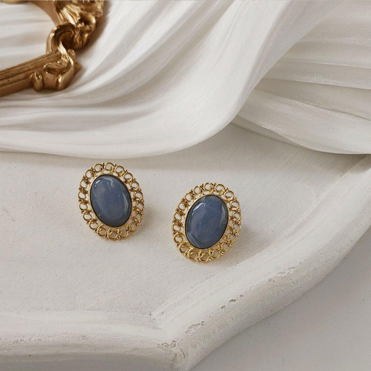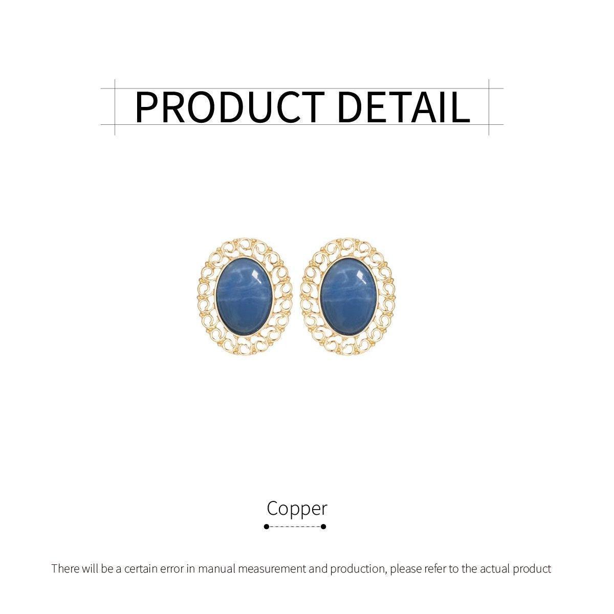 Elegant Blue Oil Drop Oval Earrings Retro Fashion Silver Needle Women Jewelry
