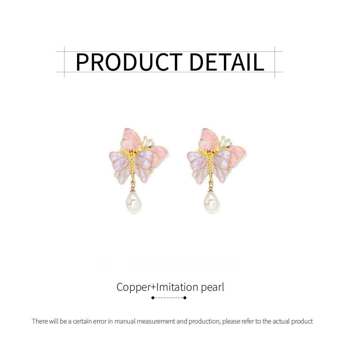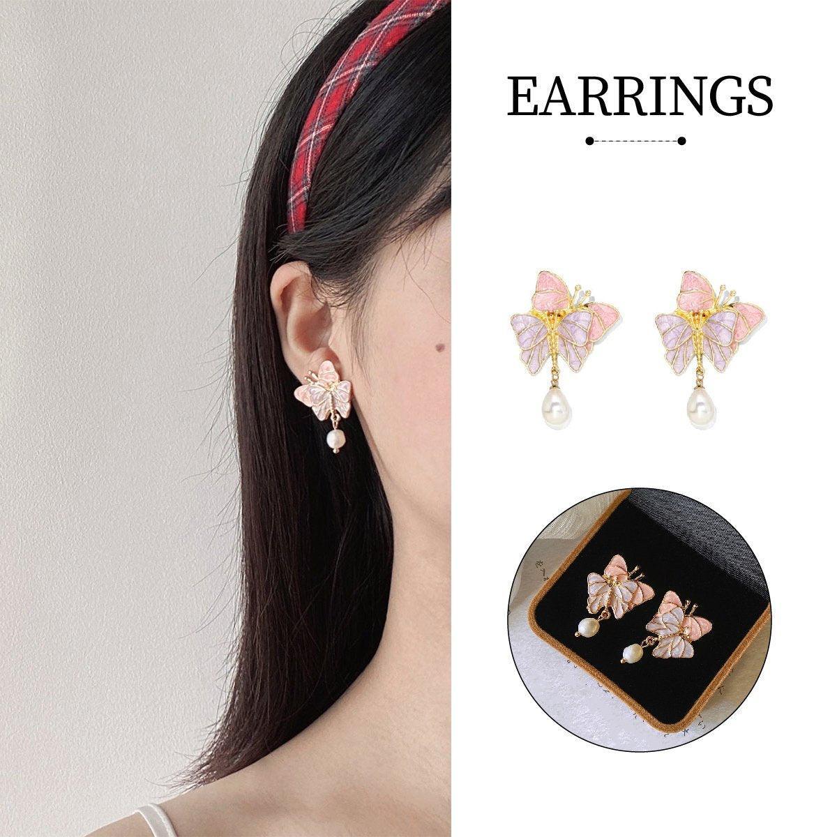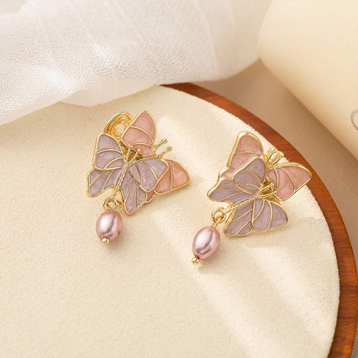 Elegant Pink Purple Double Butterfly Earrings Women Fashion Jewelry Gift Set