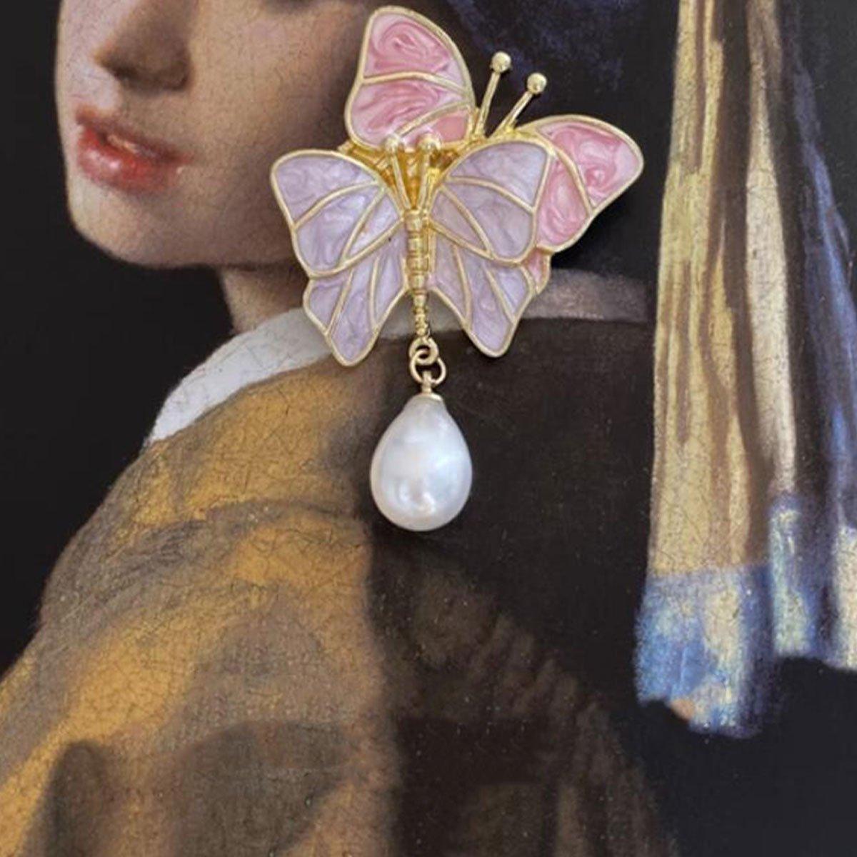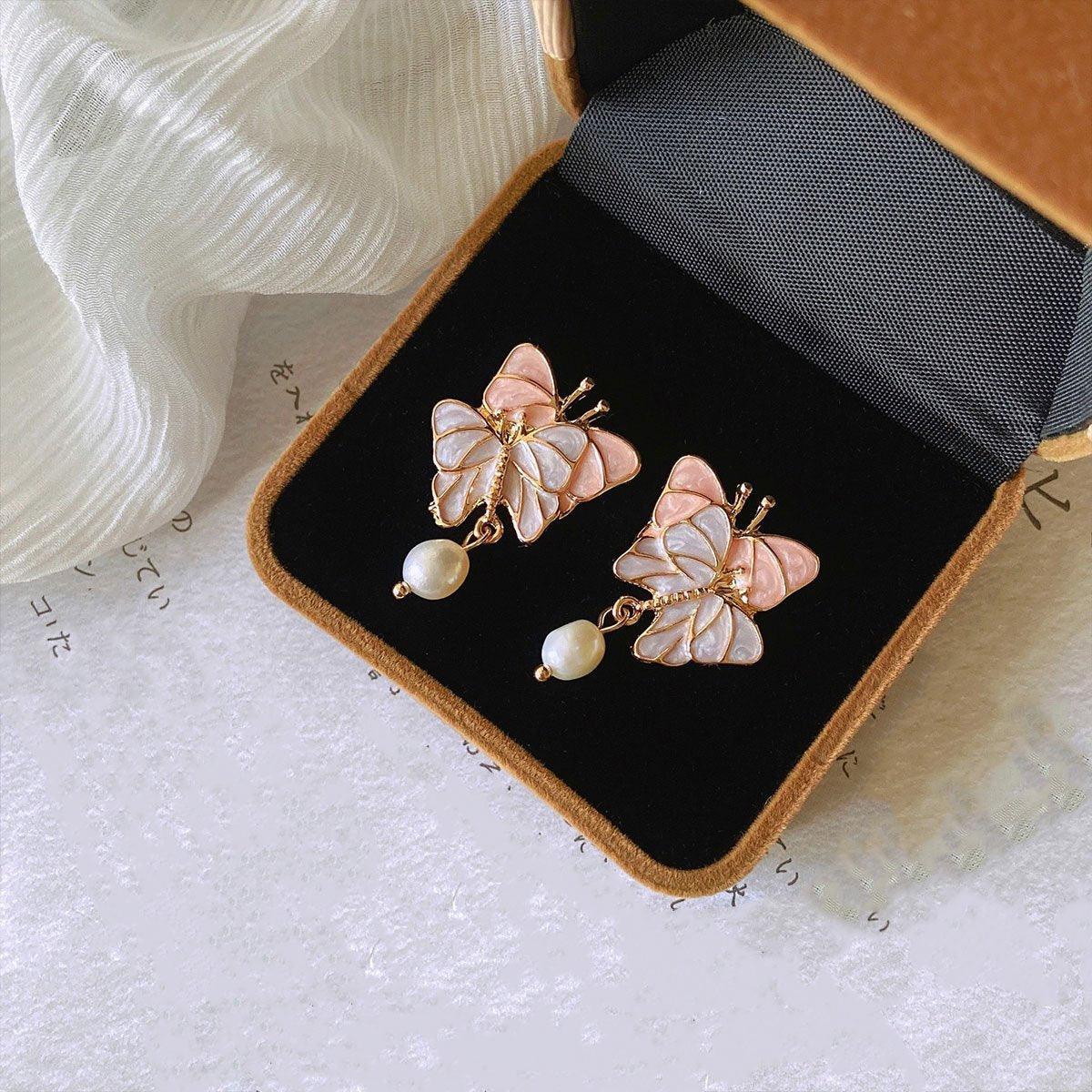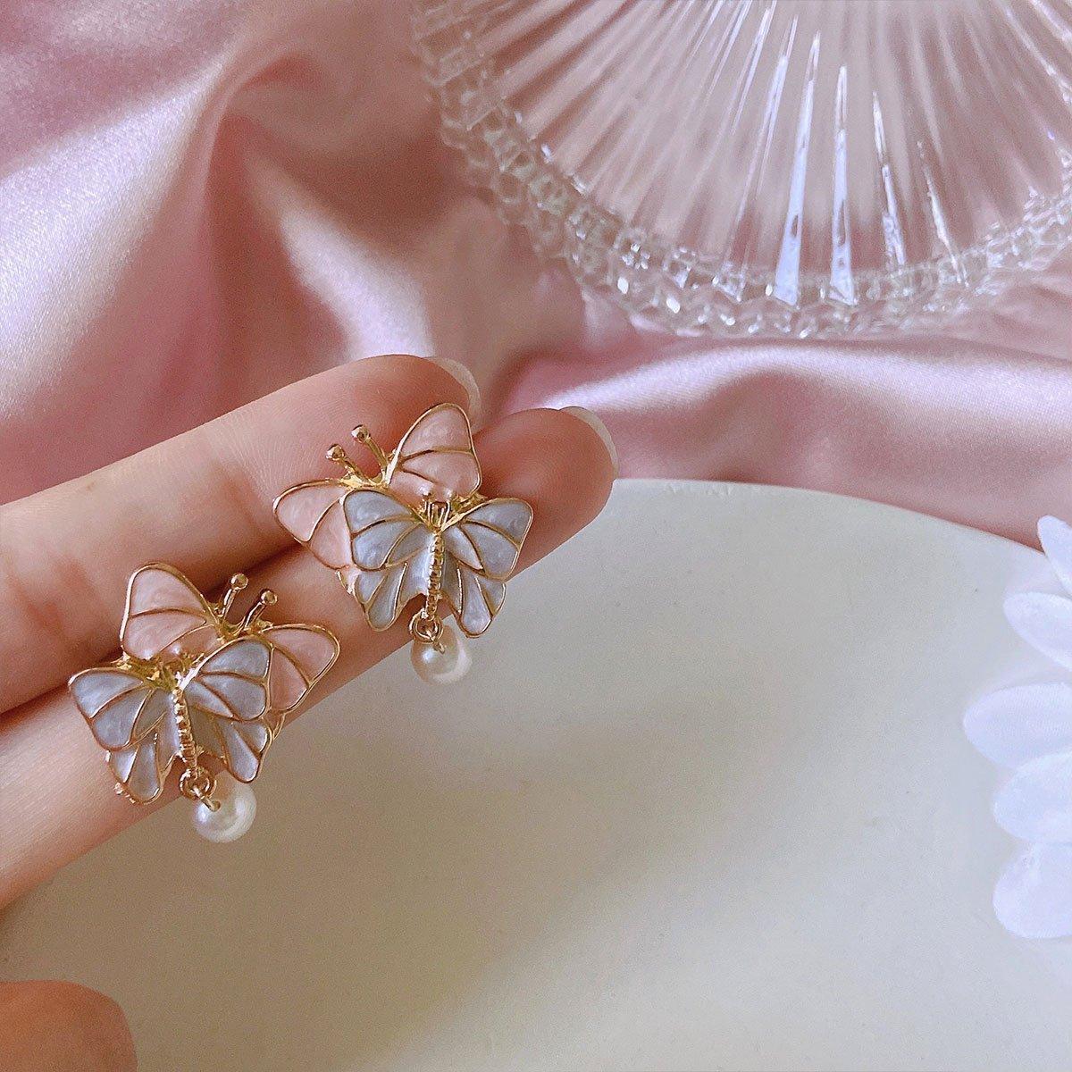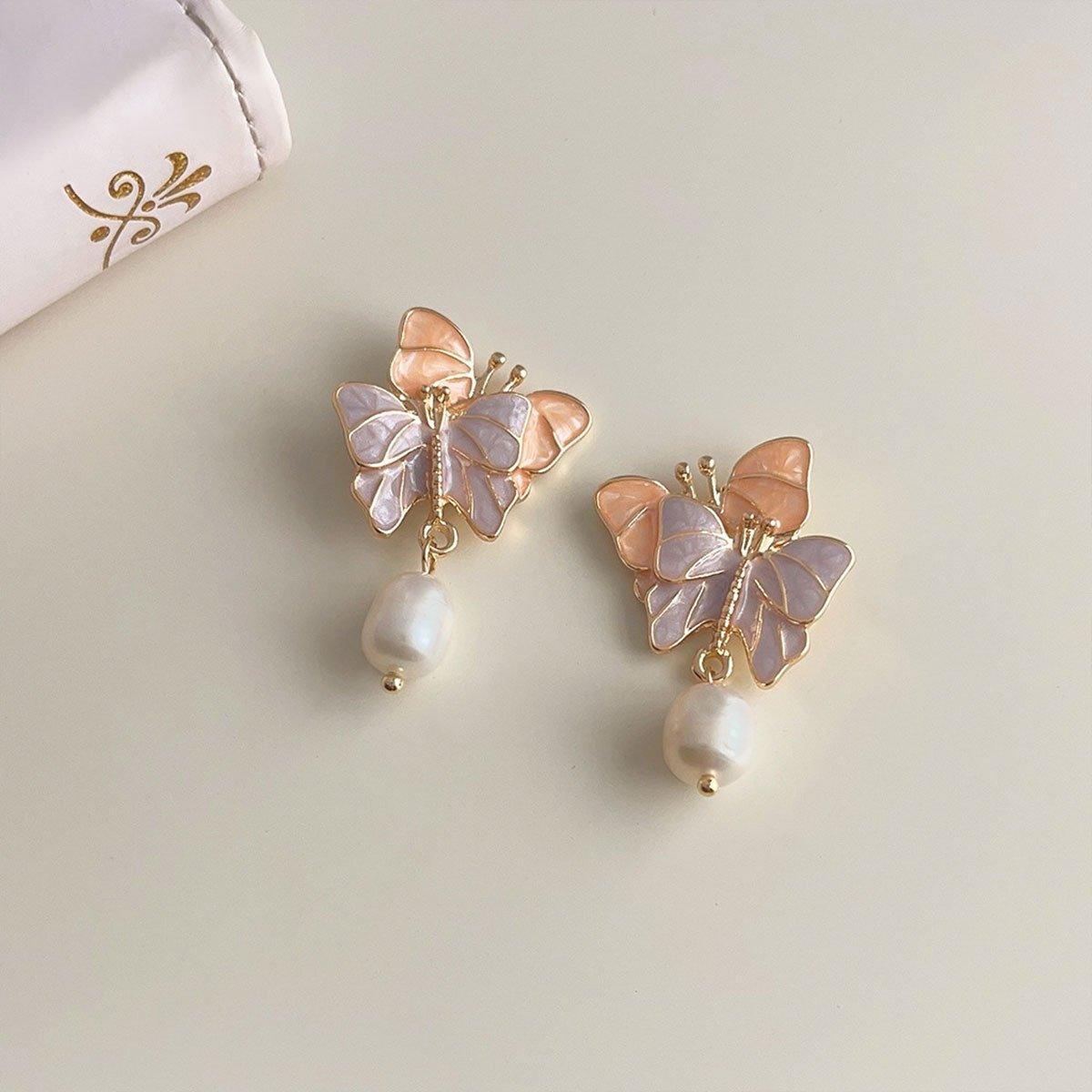Elegant Pink Purple Double Butterfly Earrings Women Fashion Jewelry Gift Set