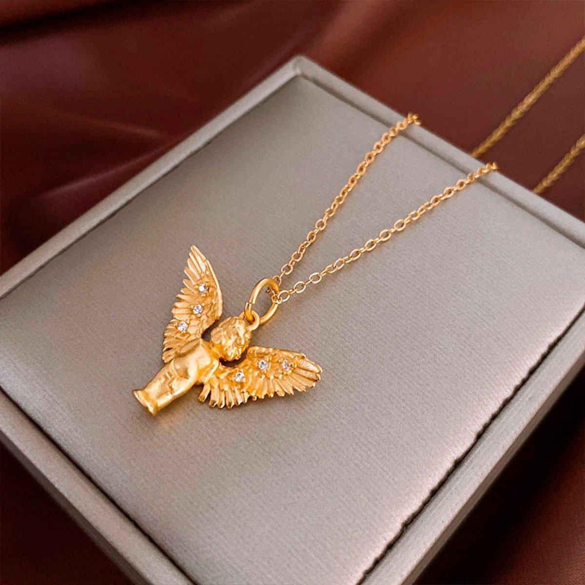 Elegant Zircon Angel Necklace Retro Fashion Clavicle Chain Luxury Jewelry