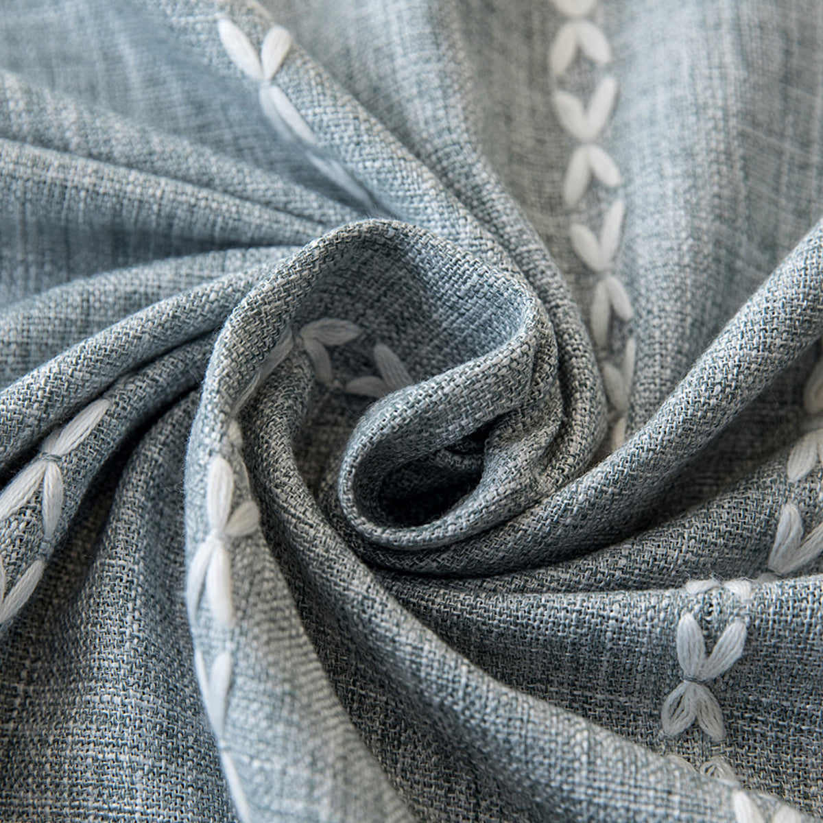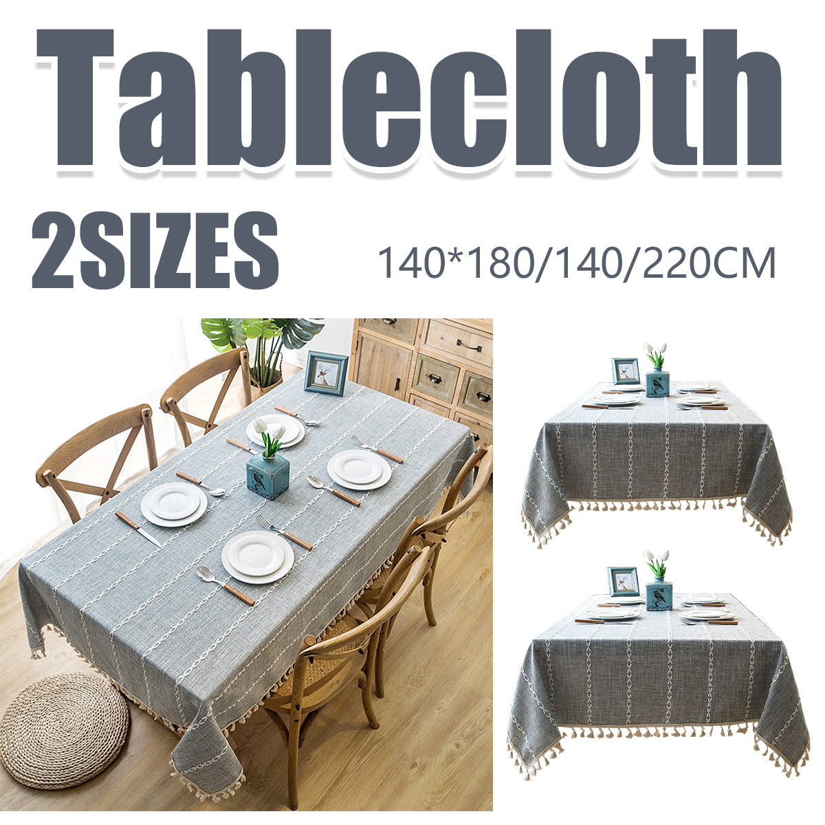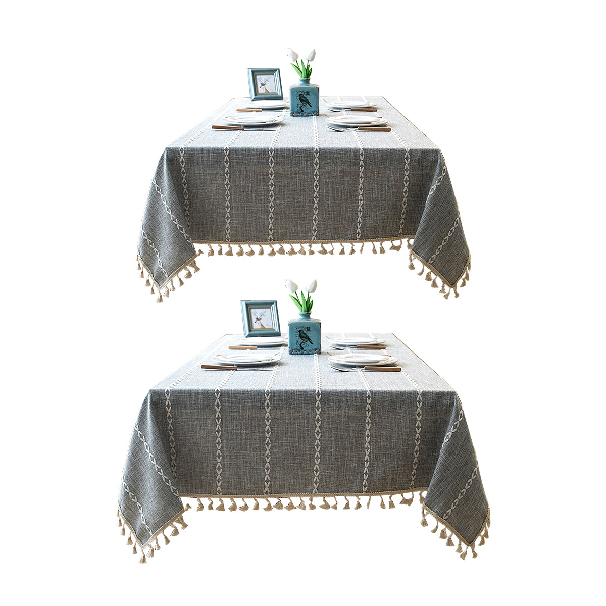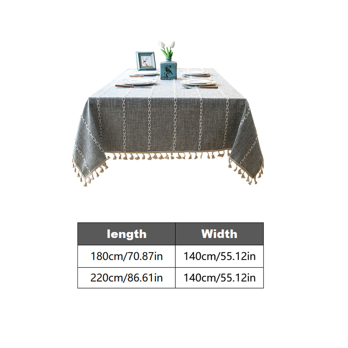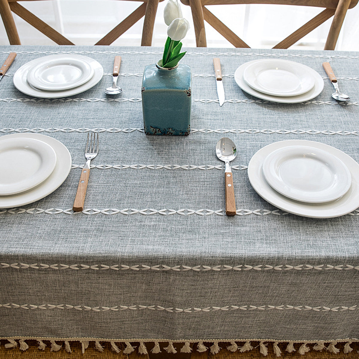 Embroidered Tassel Colored Cotton-Linen Like Geometric Rectangular Tablecloth