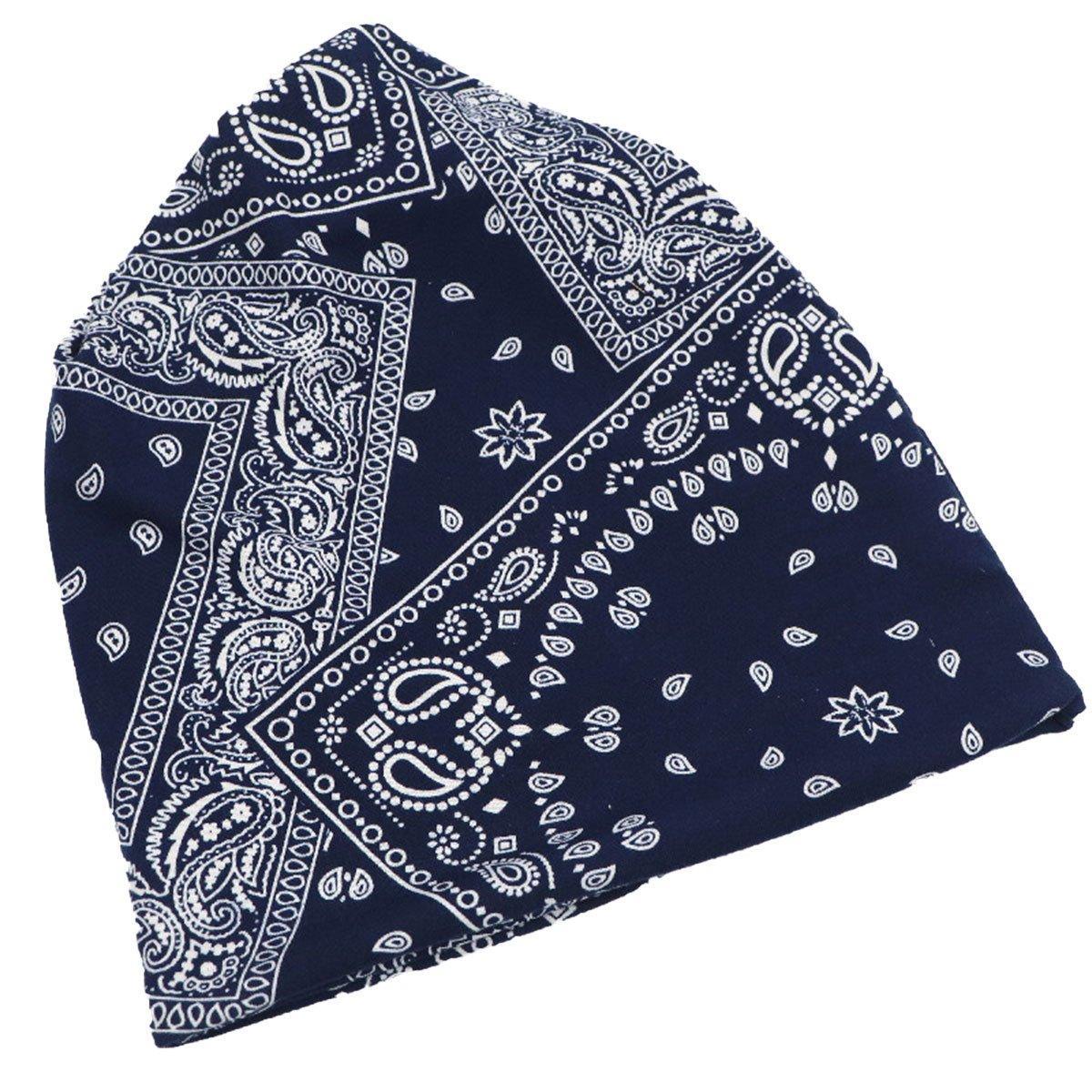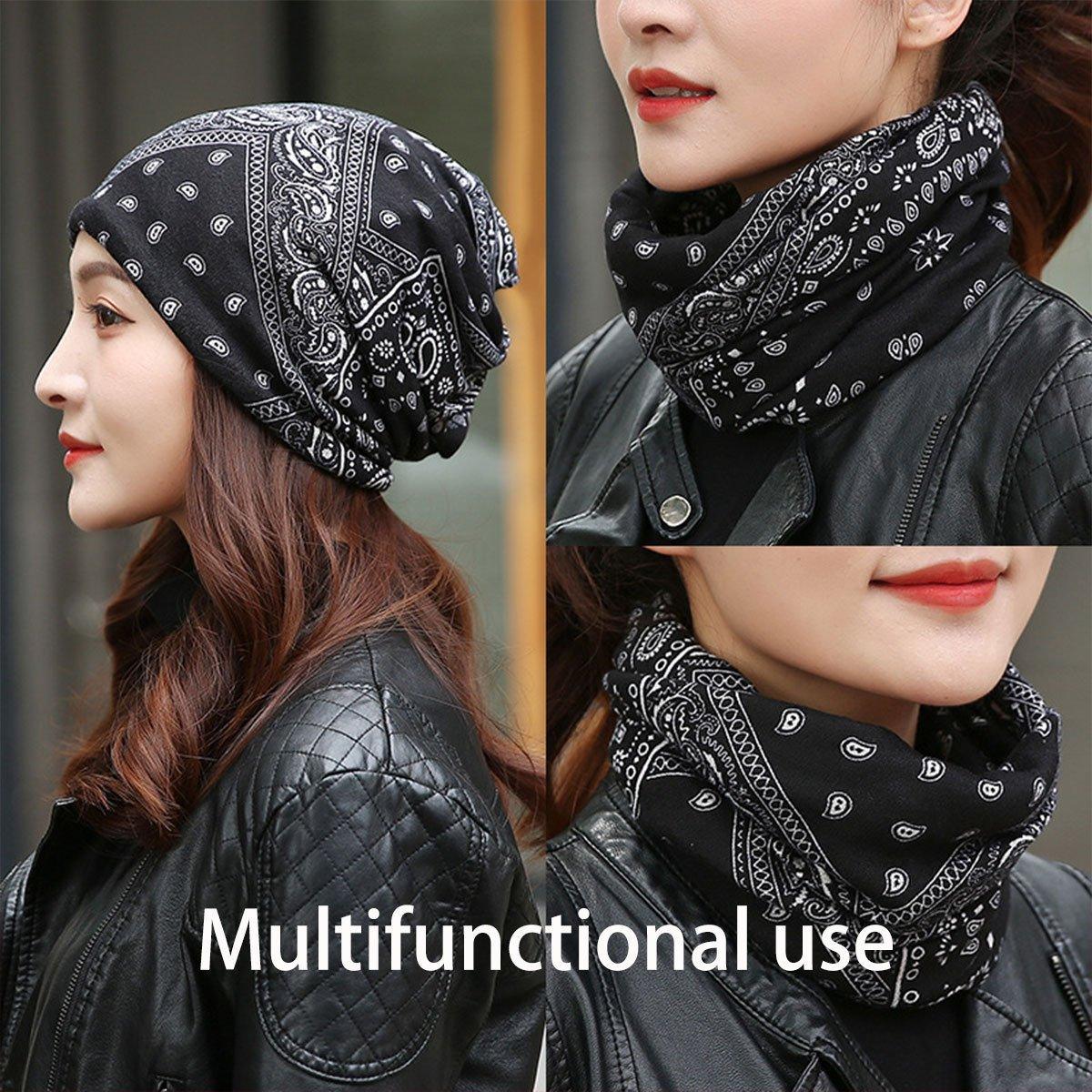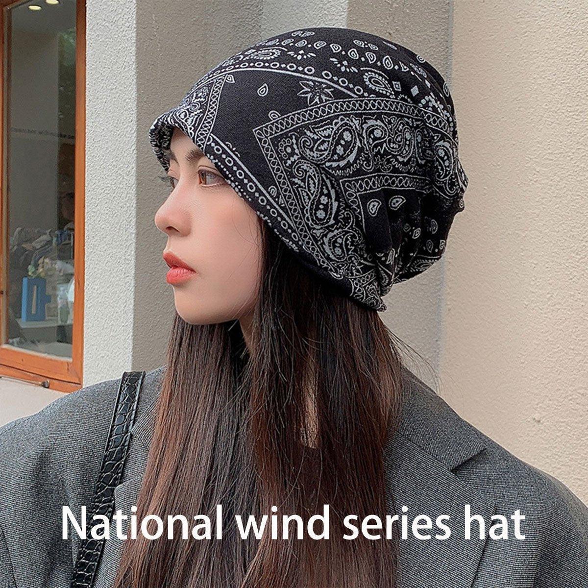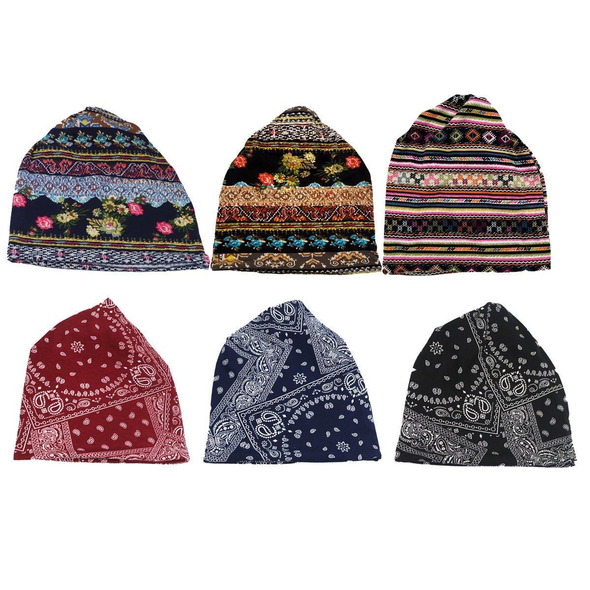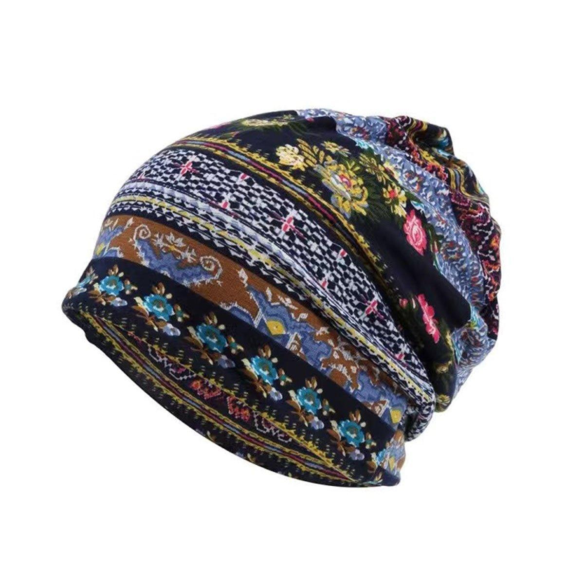 Ethnic Style Cotton Flower Stripe Pullover Cap Dual Purpose Turban Hat for Women