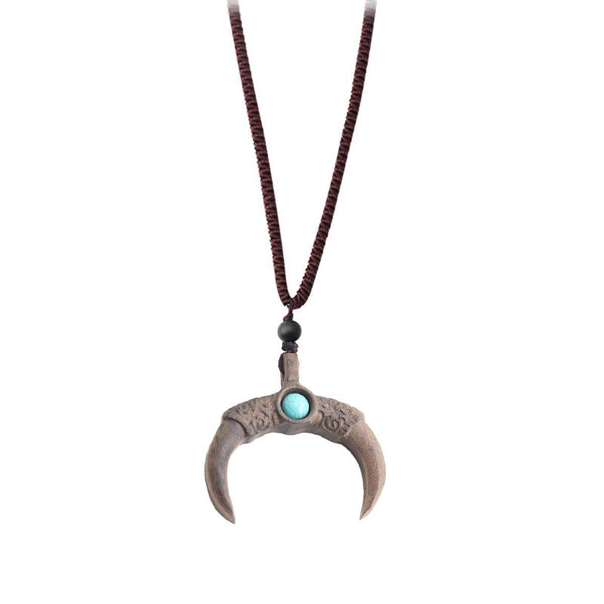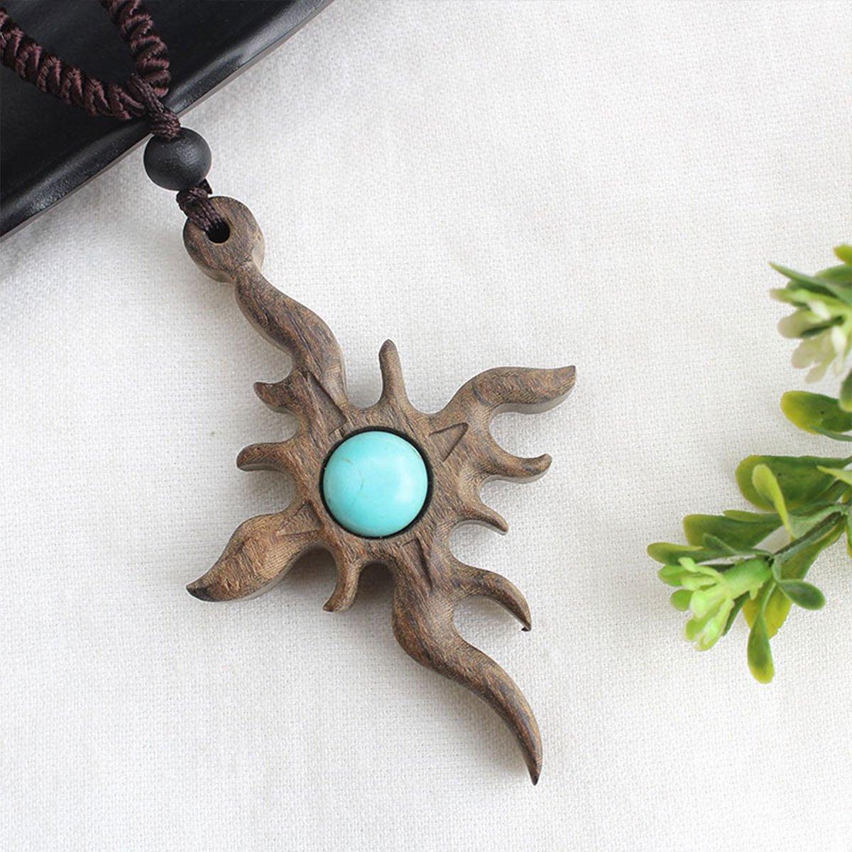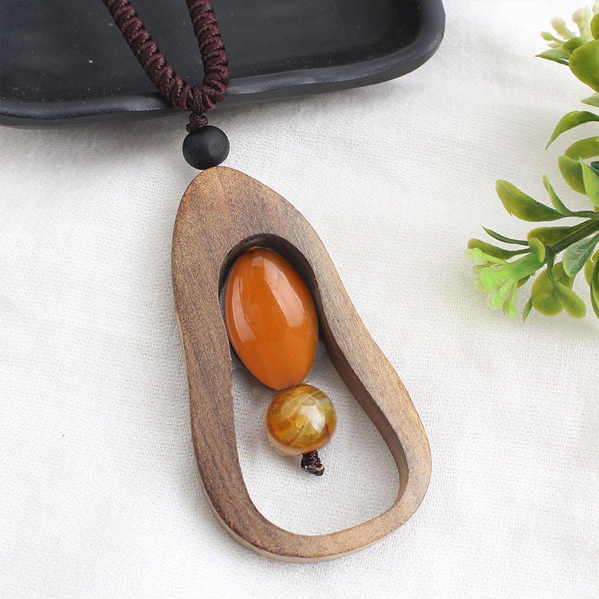 Ethnic Style Retro Long Sweater Chain Necklace with Wooden Pendant Fashion
