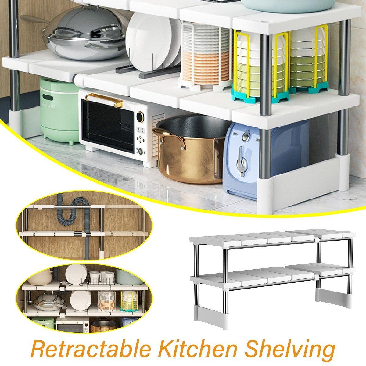 Expandable Kitchen Shelf Cabinet Organizer Tiered Storage Rack for Home Use