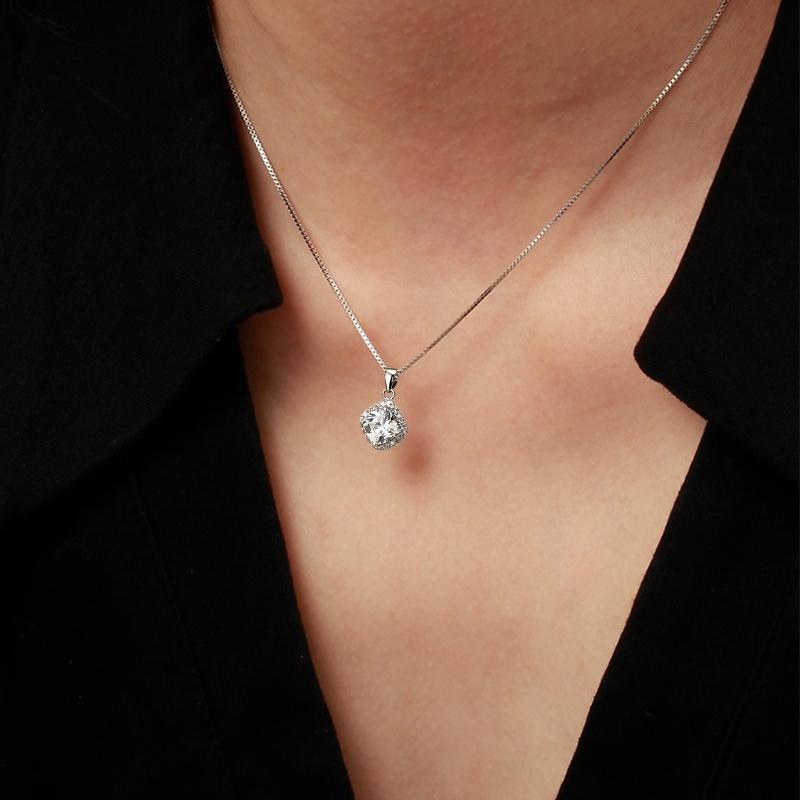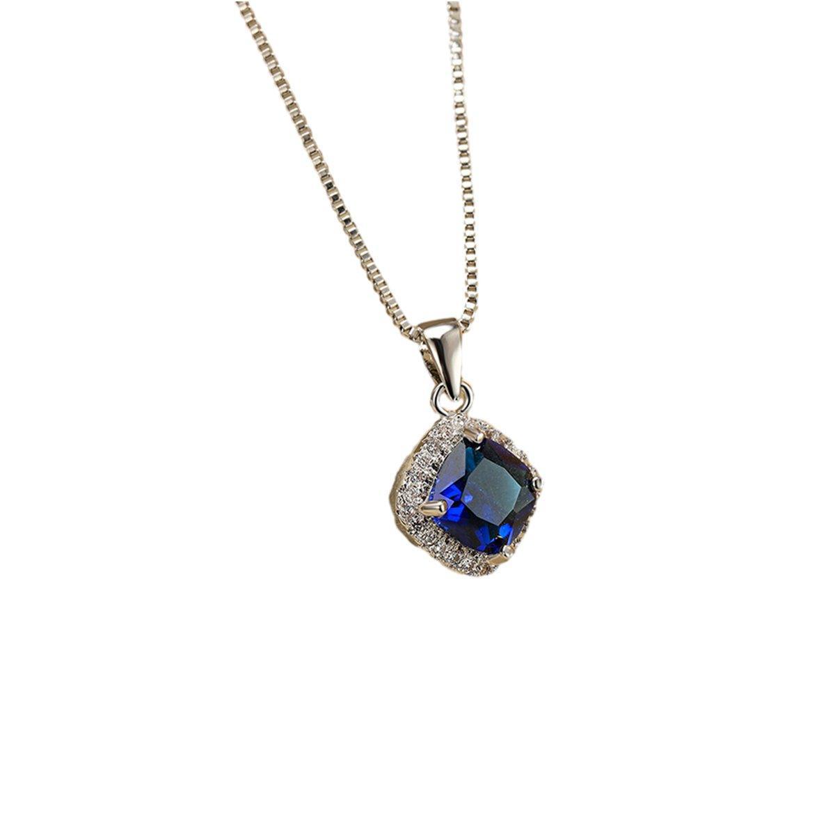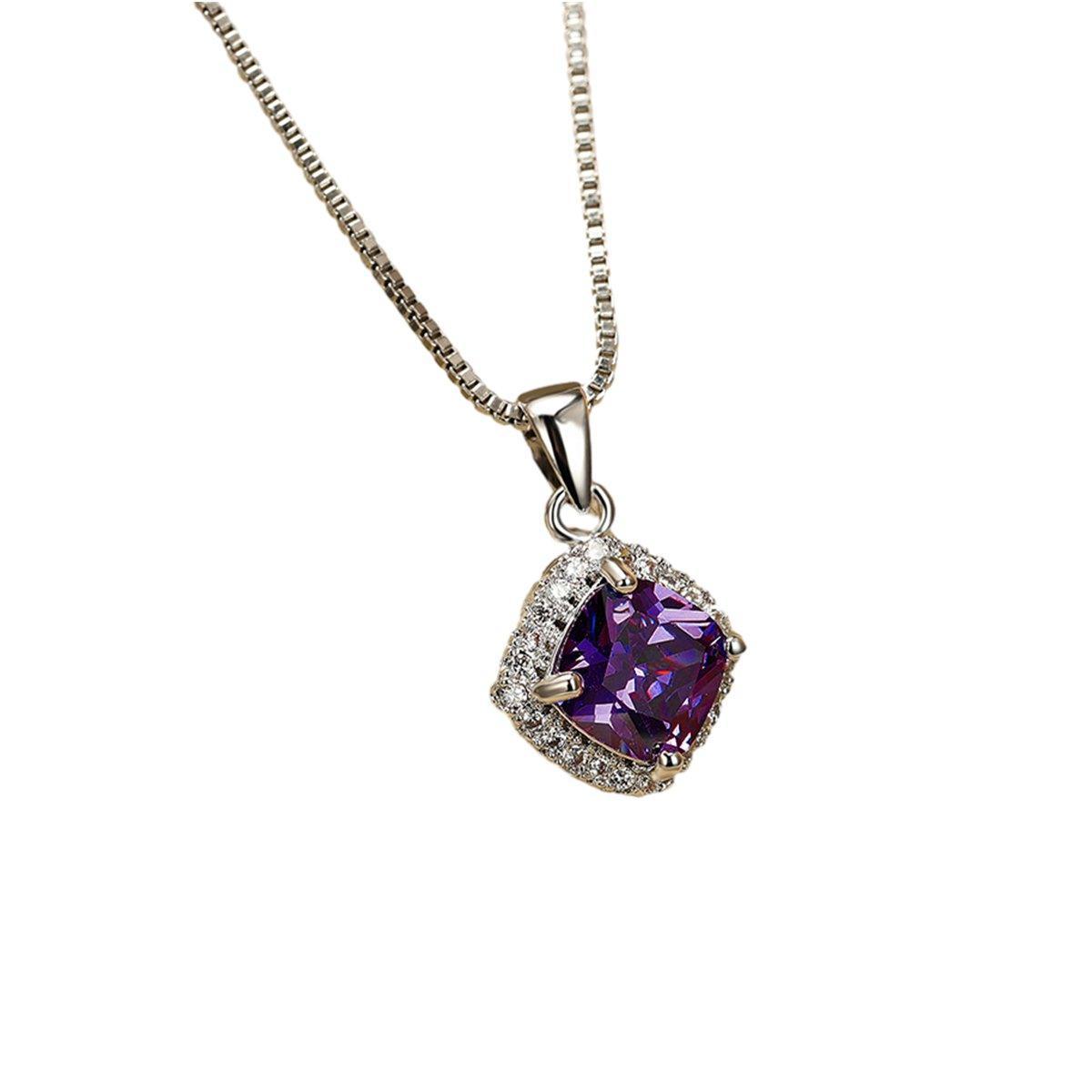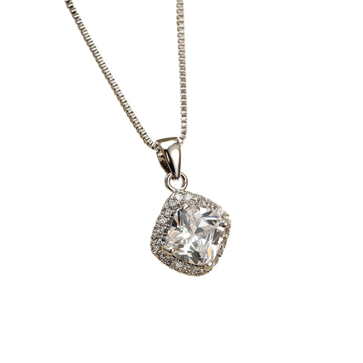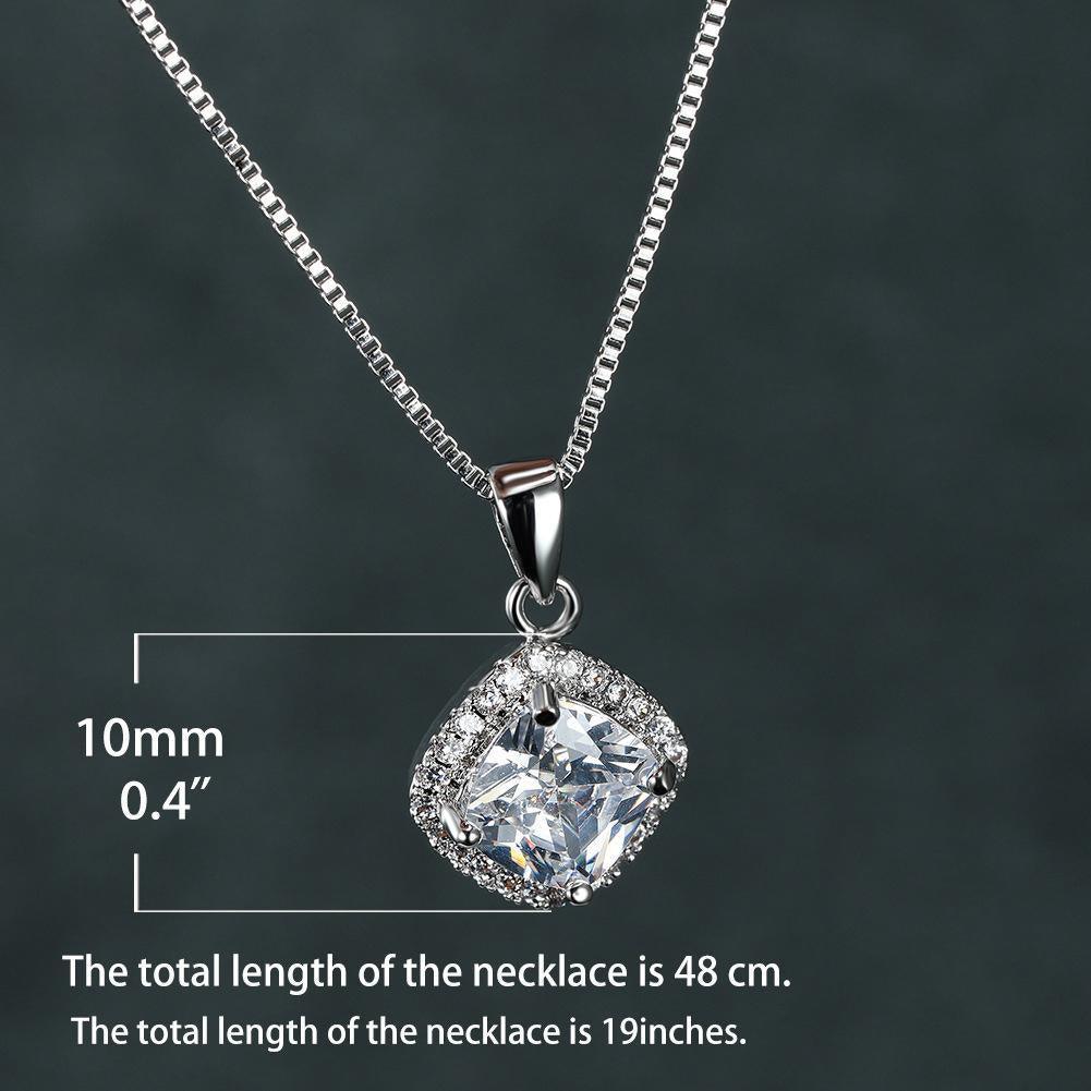 Fashion 925 Sterling Silver Stunning Square Cubic Zircon Pendant Necklace Chain