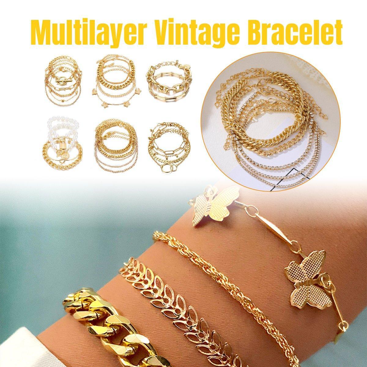 Fashion Multi Layer Tassel Bracelet Set Retro European American Style Jewelry