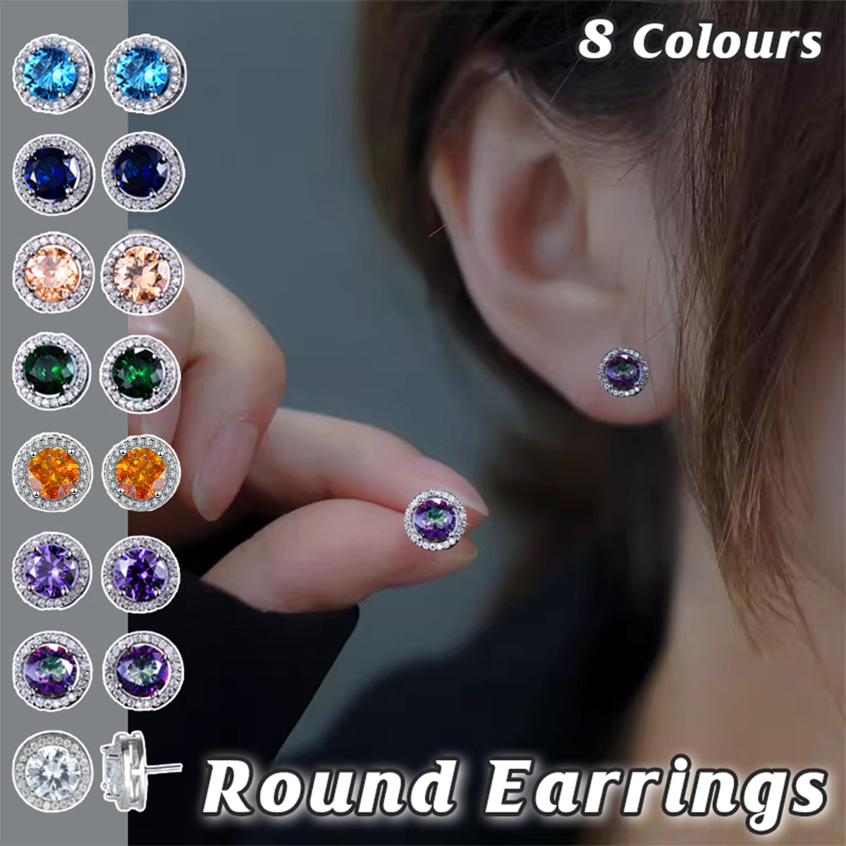 Female Round Zircon Stud Earrings Full Diamond Boucle Big Hollow Cubic Gift