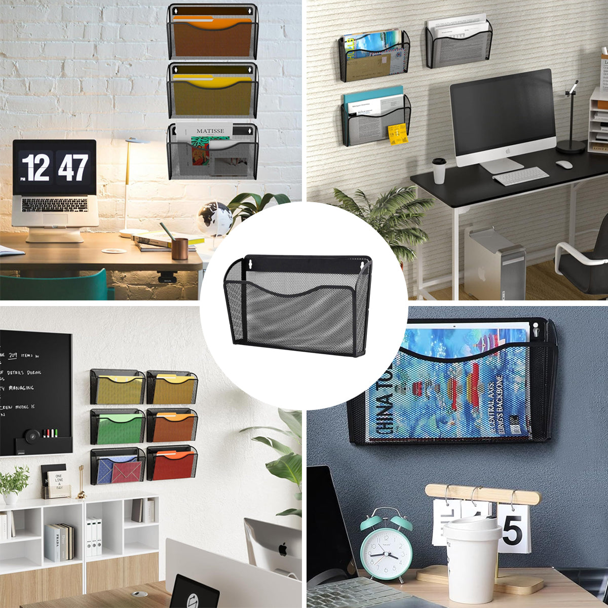 File Organizer Mesh Wall Mounted Rack Magazine Holder Storage Basket for Office