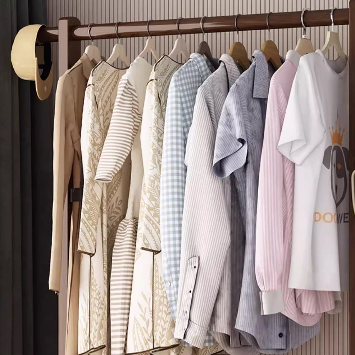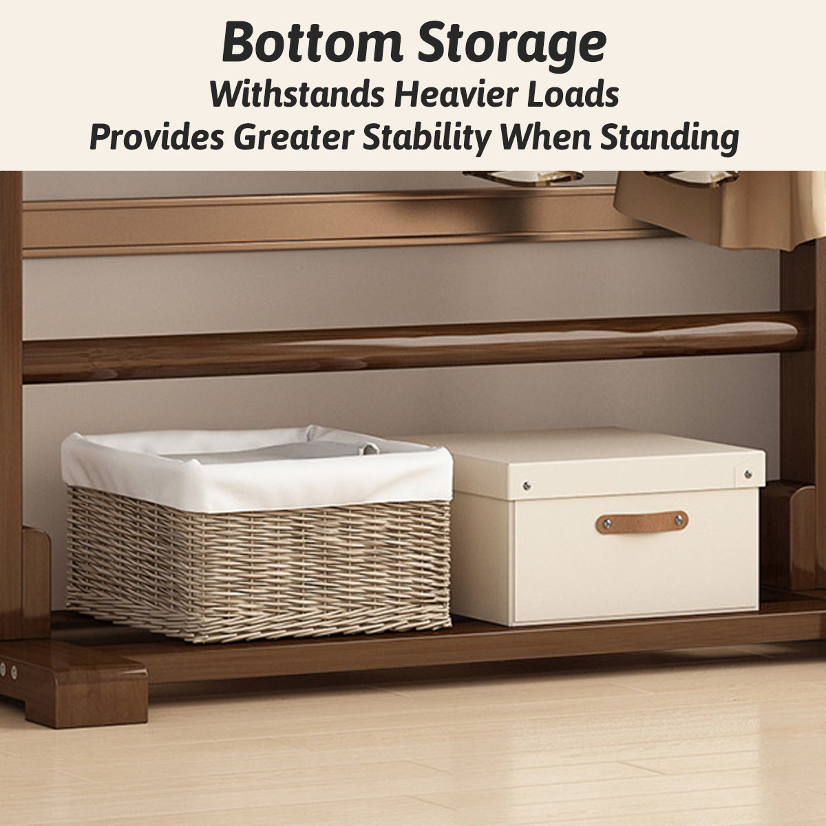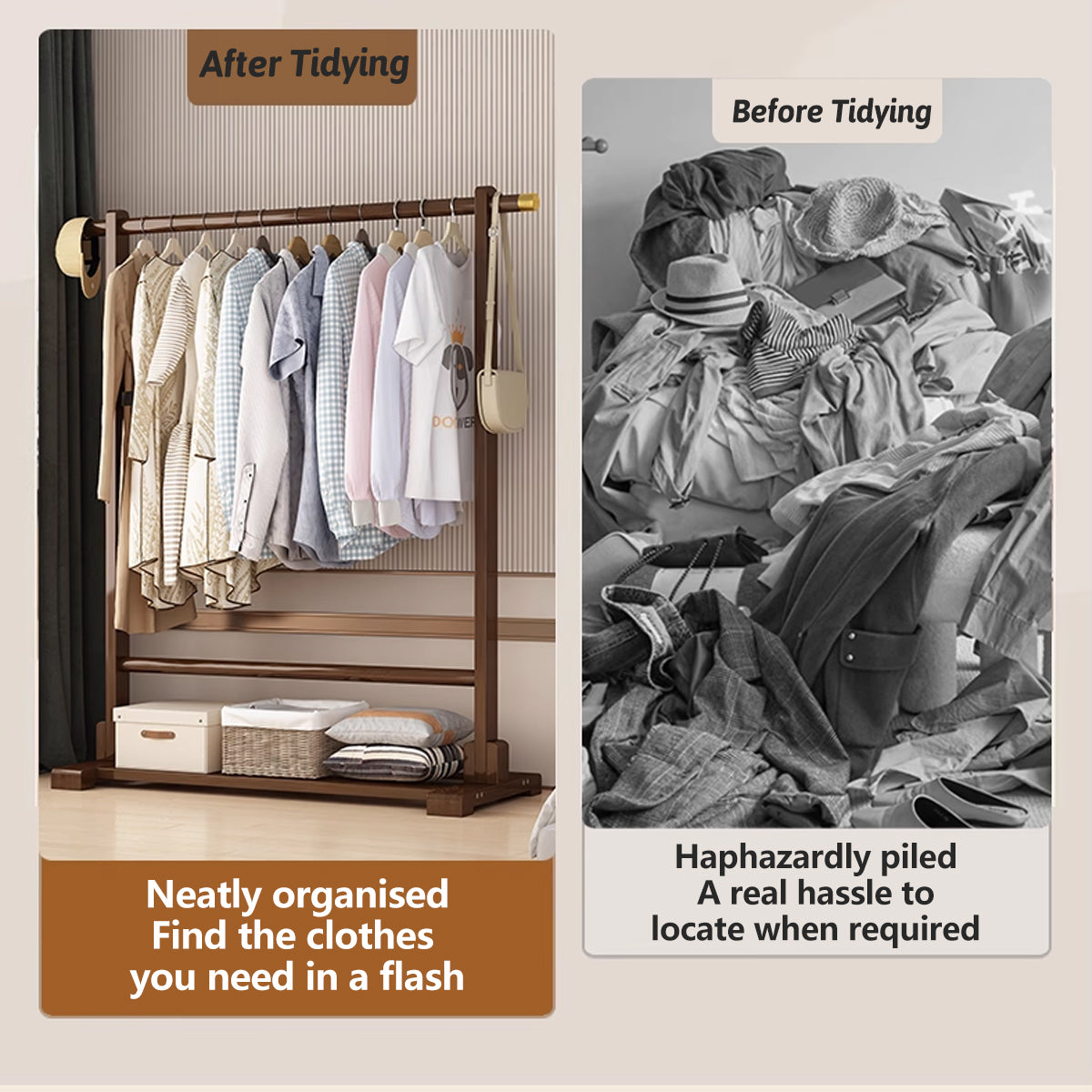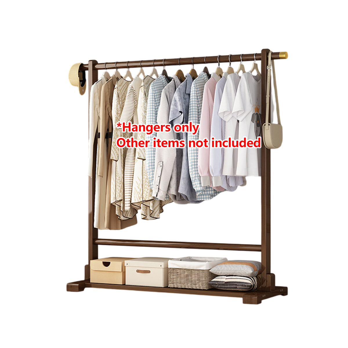 Floor Standing Clothes Rack Durable Bamboo Material for Home Bedroom Storage