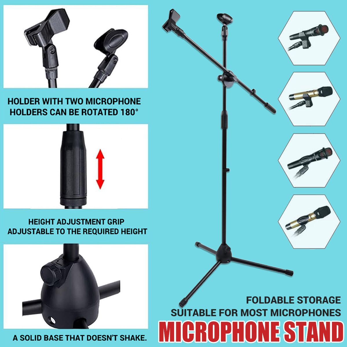 Foldable Adjustable Microphone Tripod Stand Durable NonSlip Stage Studio Karaoke
