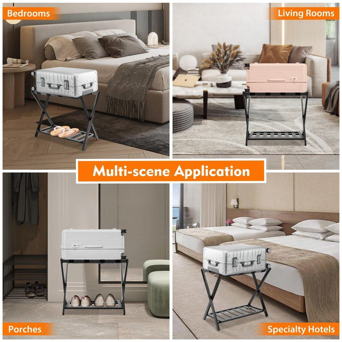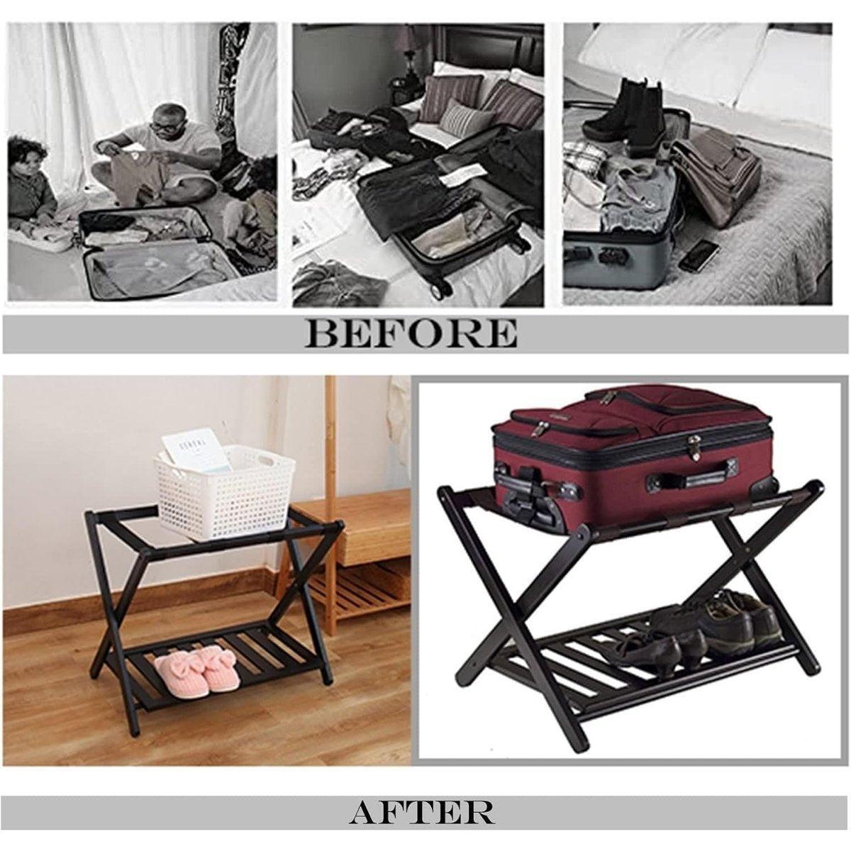 Foldable Bamboo Luggage Rack Hotel Room Portable Suitcase Holder Travel Rack